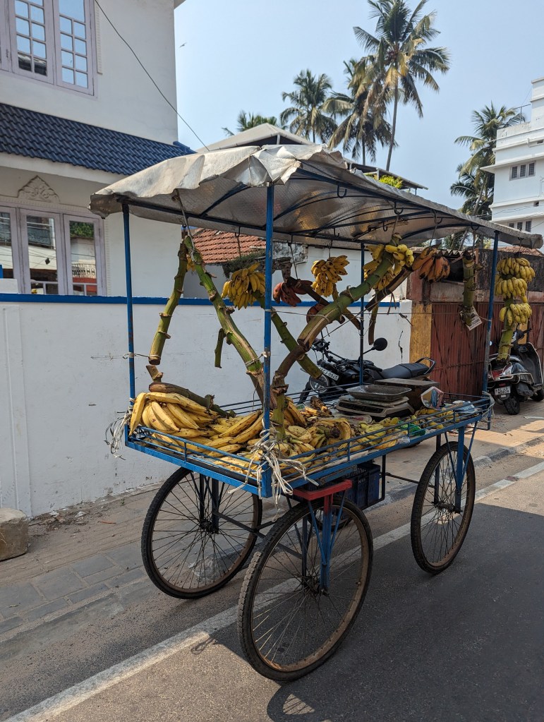 We had 6 nights booked in “Green Woods Bethlehem” homestay with our hosts Sheeba and Ashley. We had a warm welcome from Sheeba who sat us down in her part-living room, part-reception area and fed us with lemon tea and bananas whilst the room was prepared. The room was clean and tidy though relatively simple, and we had the pick of 5 of them since we arrived earliest. Once we’d dropped our things, we headed out into the the Fort Kochi town centre for lunch.