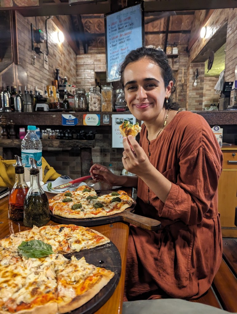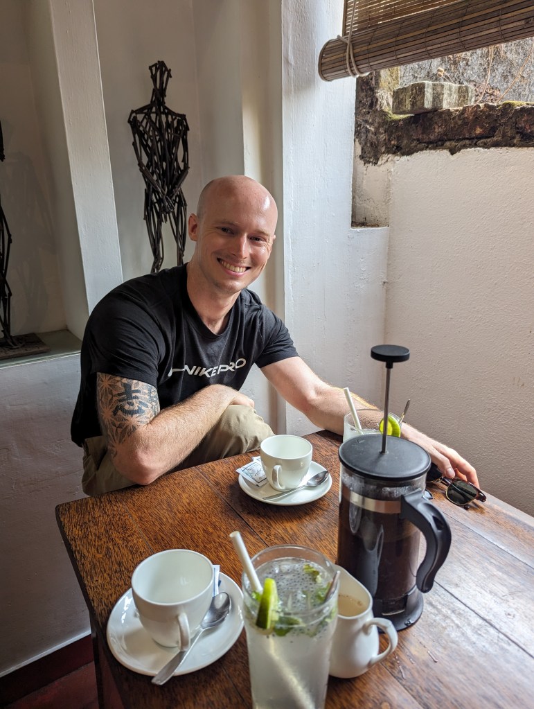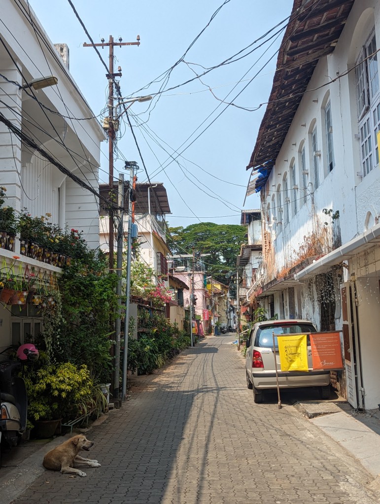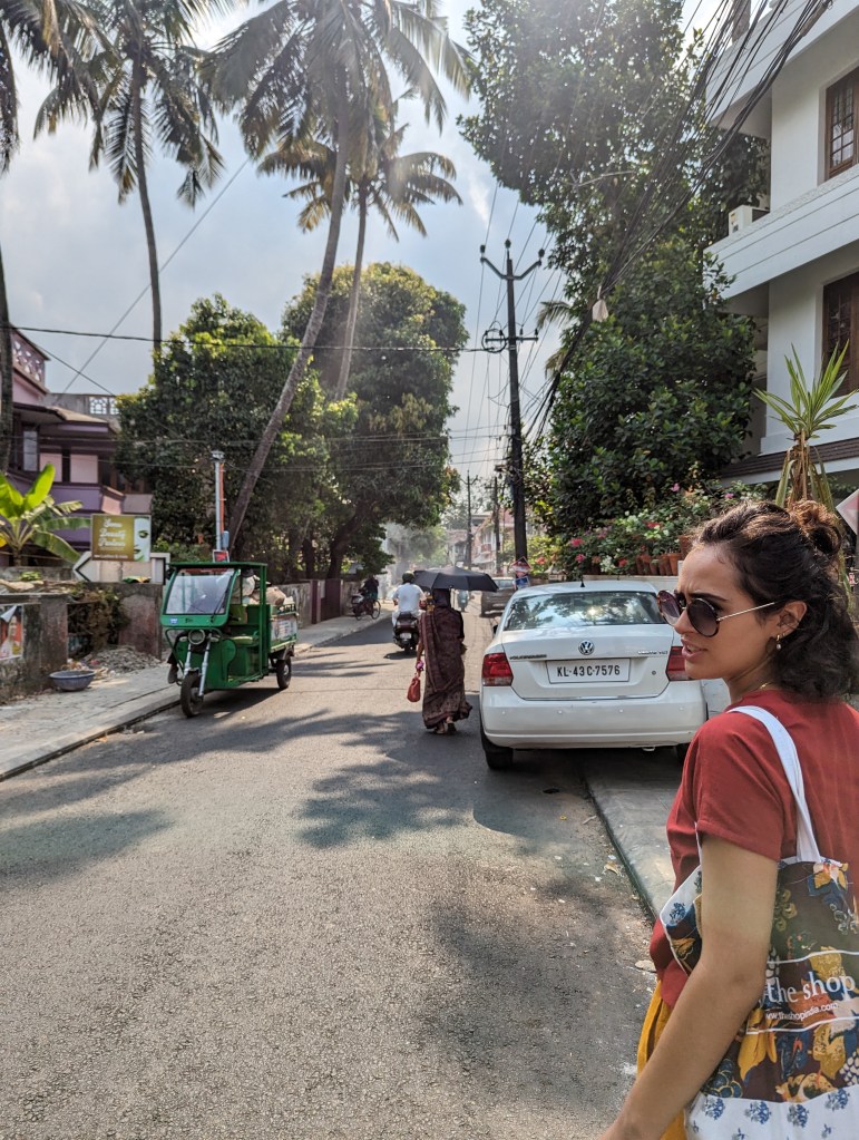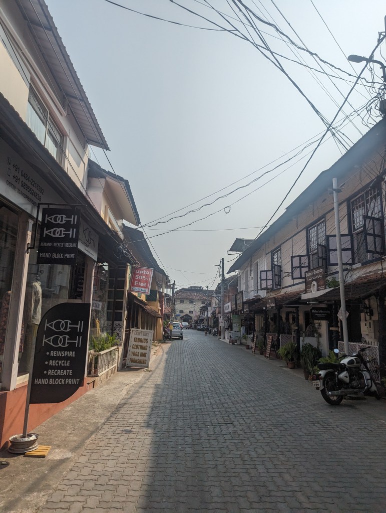 As previously mentioned, as much as we loved Munroe Island, the coffee was as best poor quality instant coffee. So, to be presented with a giant cafetiere of good quality coffee at one of the local art cafes was a delight. We ate lunch here too before heading back to sit out the heat of the day in the air conditioning. In the evening, we walked the 20 or so minutes back into Fort Kochi for a quick dinner. After a week of banana-leaf fish and vegetable thalis, we were craving some Western food, and the tourist area of Fort Kochi didn’t disappoint. After a pizza in an outdoor cafe, we once again headed back to the hotel for an early night.