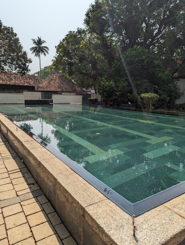 Kochi has a old British club called the Cochin Club facing out to the Arabian sea, the members of which were now the wealthy Indian families of the area. We had been tipped off that we could use the club’s pool for 500/- (about £5), and so headed there to cool off in the afternoon sun. The pool was deserted except from some thirsty egrets and crows, sparkling clean and blessedly cool. We spent a couple of hours here swimming and reading, then walked home for a rest before dinner.