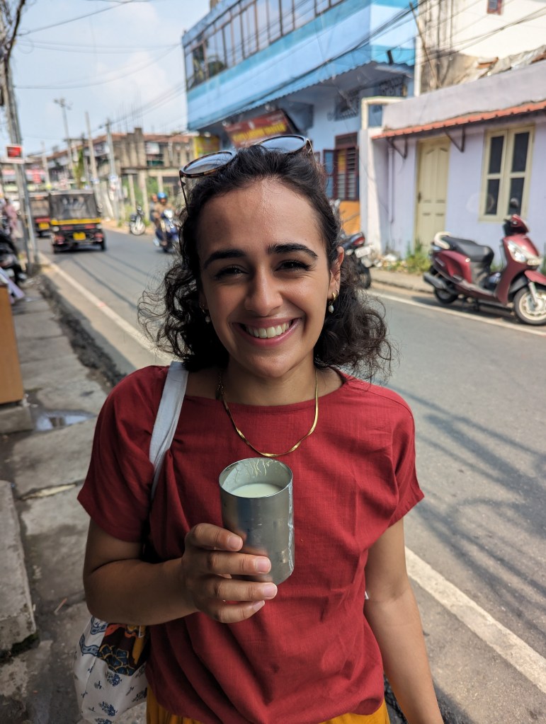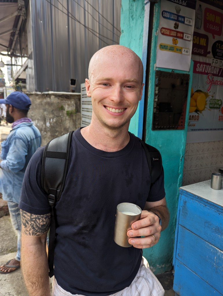 The other tourist areas on the Kochi peninsula are Jew Town and Mattancherry, which to all intents and purposes are the same place given their proximity to one another. We set out to walk there on Wednesday morning, passing by a recommended lassi stall on the way. The walk was hotter and noisier than expected, with the road clearly being one of the busier highways in an otherwise relatively quiet city, and it was a full 30 minutes before we reached the lassi stand. The day was incredibly close and humid, and we had both had about enough of the car horns and side-stepping rickshaws that walking down Indian streets necessarily involved. The lassi shop, just a counter on the side of the road, was a welcome relief. The lassi (which is a sweetened yoghurt drink) was ice cold from the fridge, and was infused with cardamon and cloves.