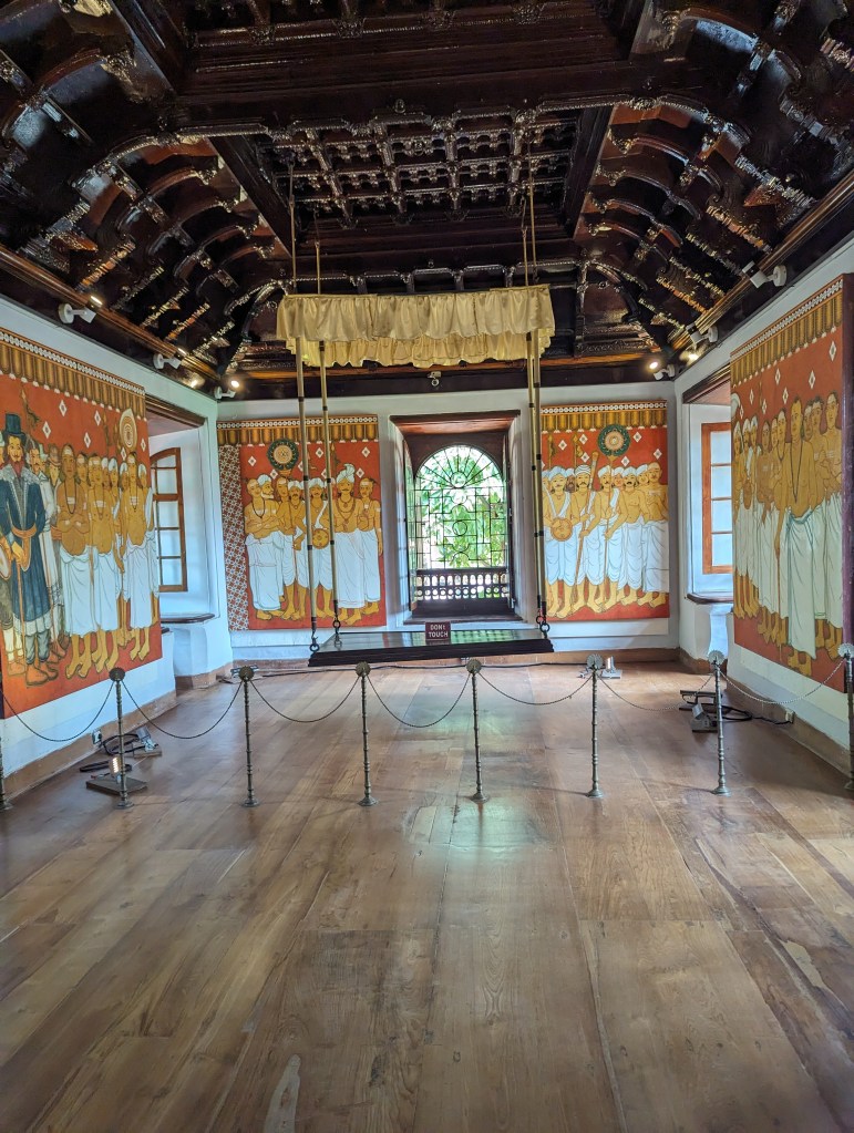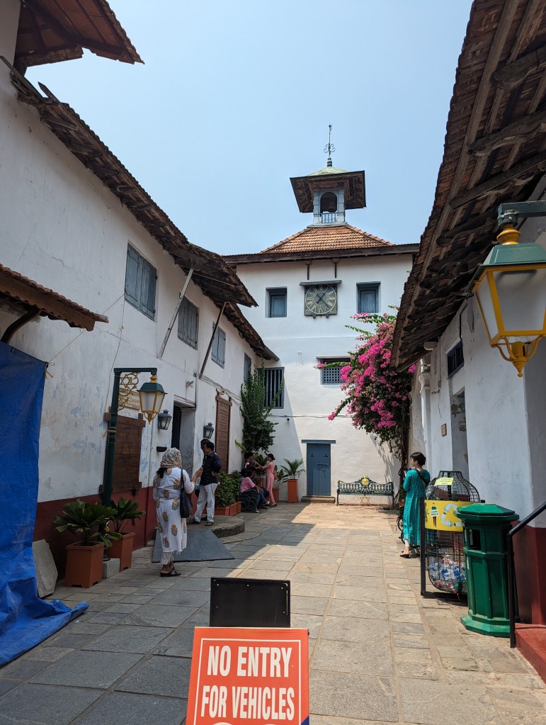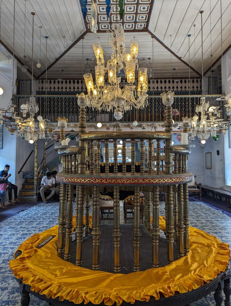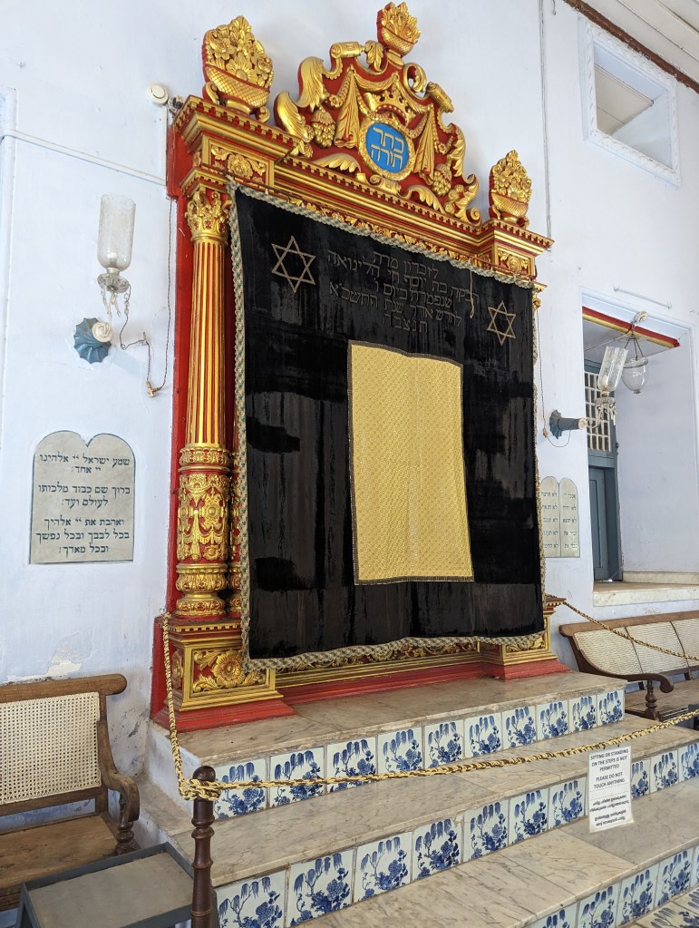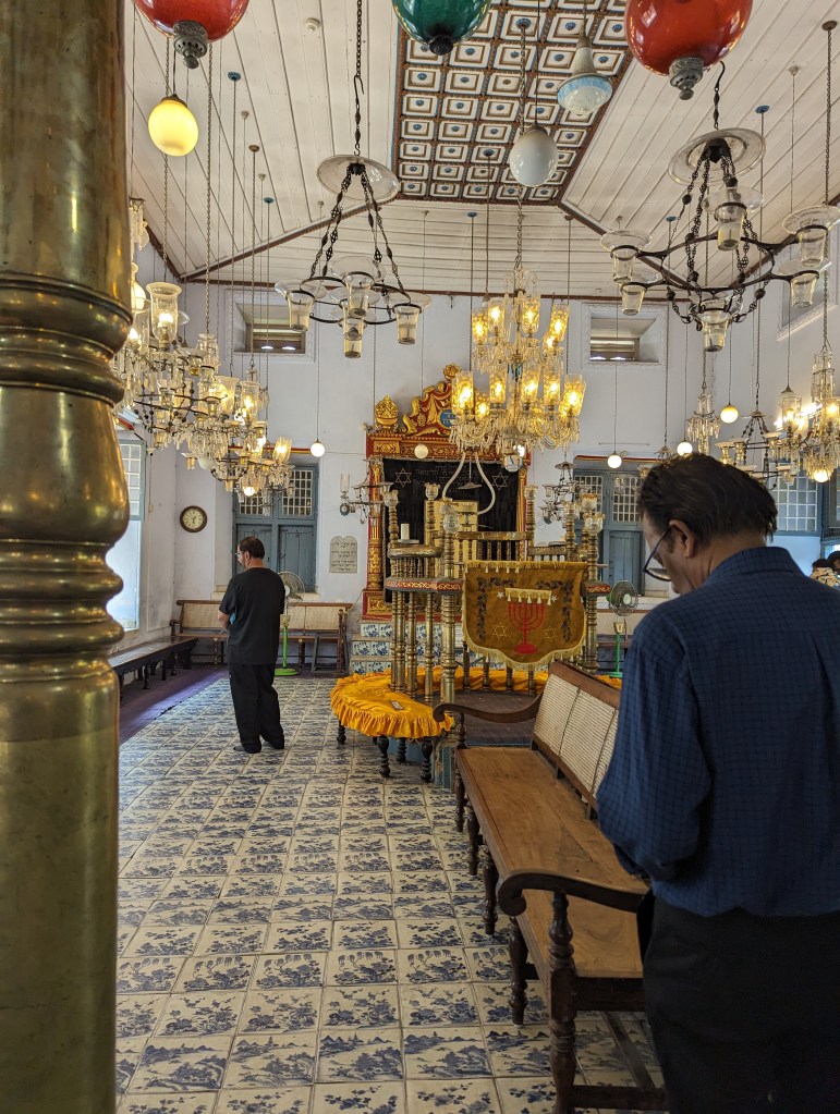 We rickshawed back to Jew Town to avoid heat-stroke, and walked around the Mattancherry Palace. Outwardly relatively unimpressive, it was the palace of the local royal family during the British rule. The palace displayed wonderful wall drawing depicting Hindu scriptures like the Ramayana, and other assorted artifacts and old portraits of the royal family. From there we walked around the corner to the Paradesi synagogue which was built by European Jewish settlers in the 16th century. The synagogue is just about still in use, though the Jewish population in Kochi has nearly all since left.