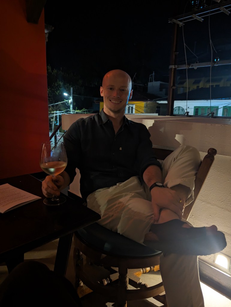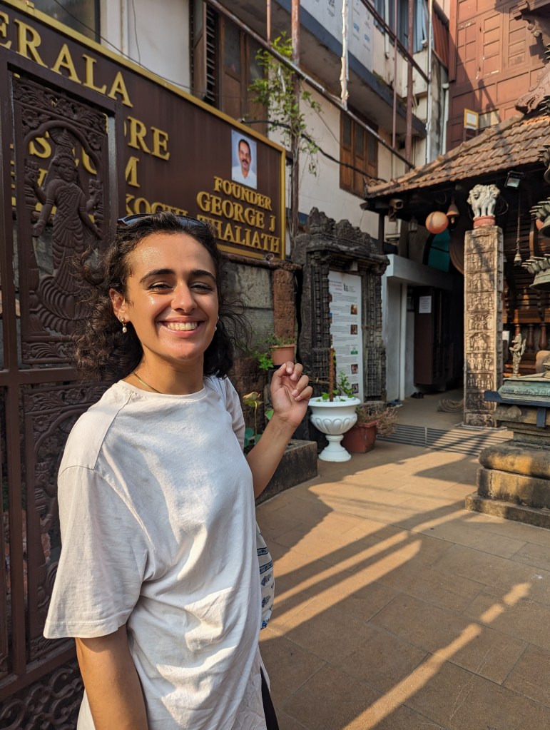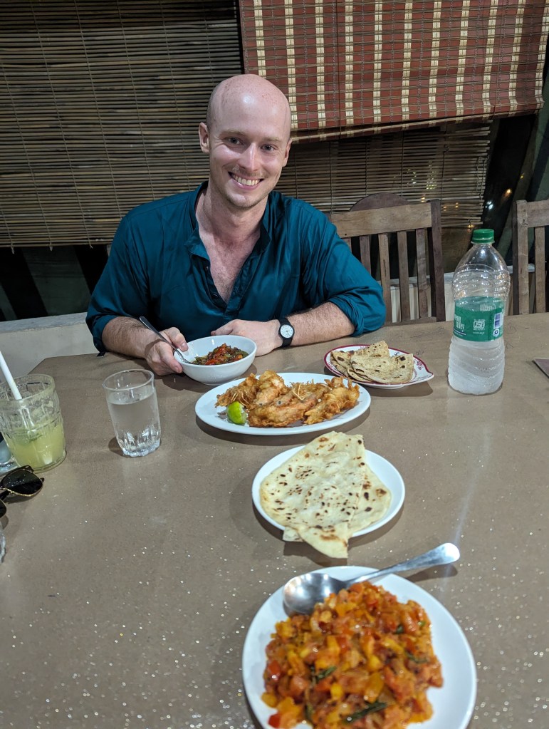 From there, we went back to the art gallery garden cafe for lunch. I left Ellie here as she had booked a 2.5 hour dance workshop that was being run that afternoon in one of the gallery’s rooms. I headed back to the homestay to do some tutoring, then walked back in to meet Ellie somewhere we could sit and I could finish writing the previous blog post. Once published, we went to a local roof-top restaurant serving seafood curries and some Keralan dishes, which turned out to be some of the best food of the trip. It was a fitting end to the last day in Kochi.