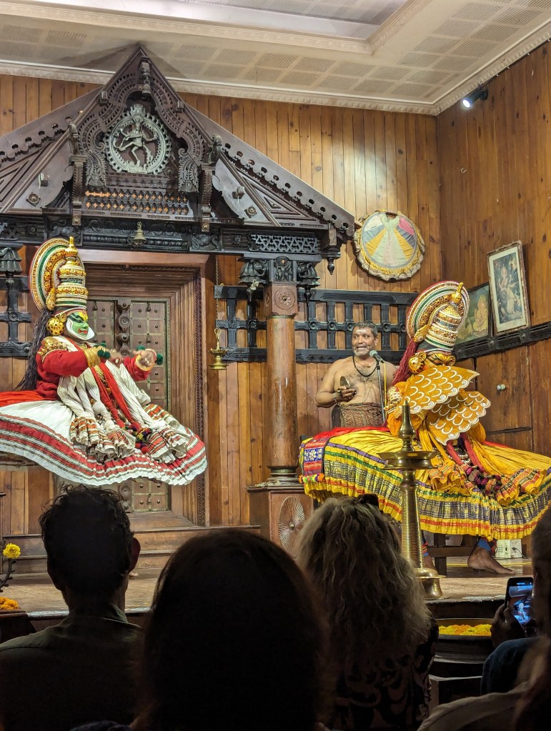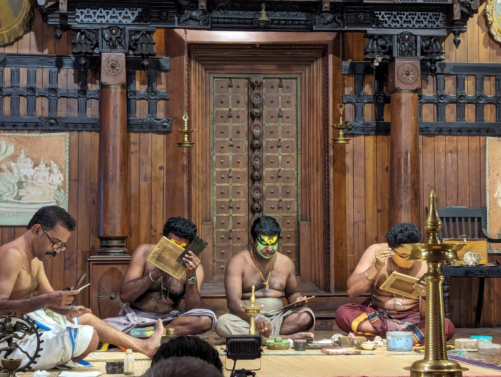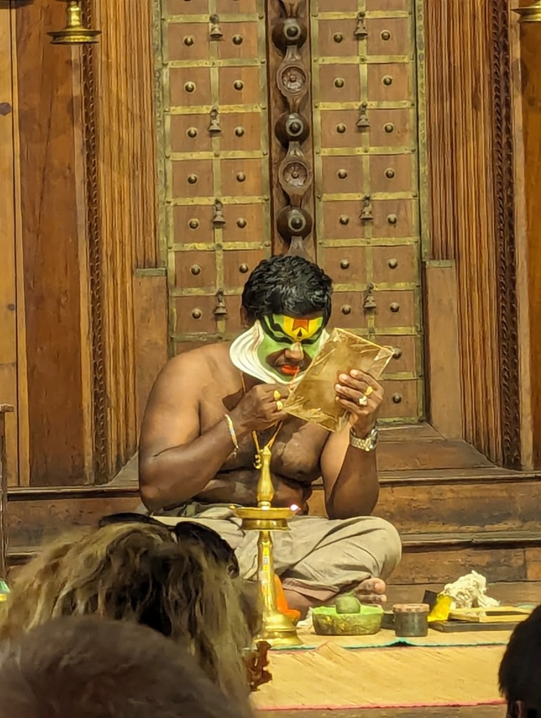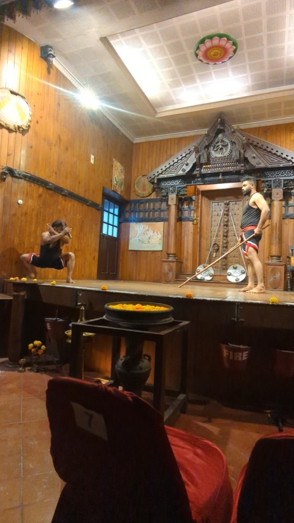 We were at the right end of the city to rickshaw back to Fort Kochi across the bridges that link it to Willingdon Island and then to the mainland. Once home and rested, we set out once more into Fort Kochi and to the same Kerala Kathakali Centre theatre as we had gone to the previous night, this time to watch the martial arts demonstration.