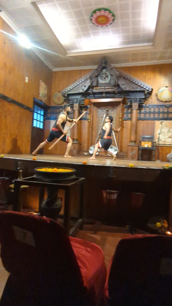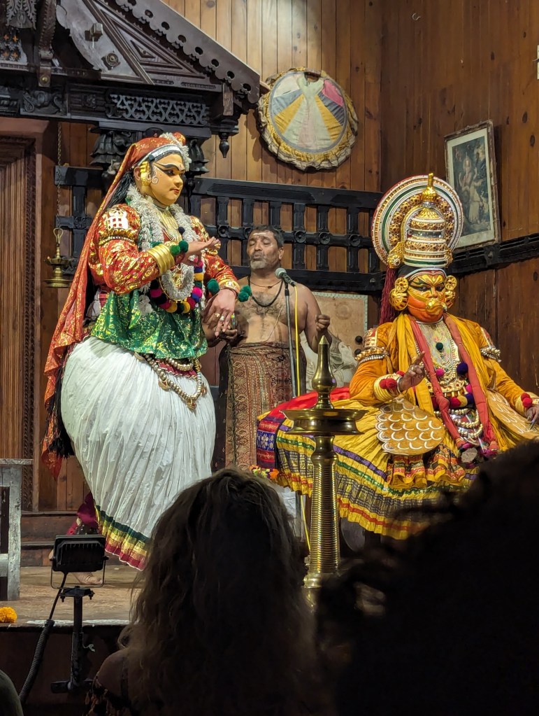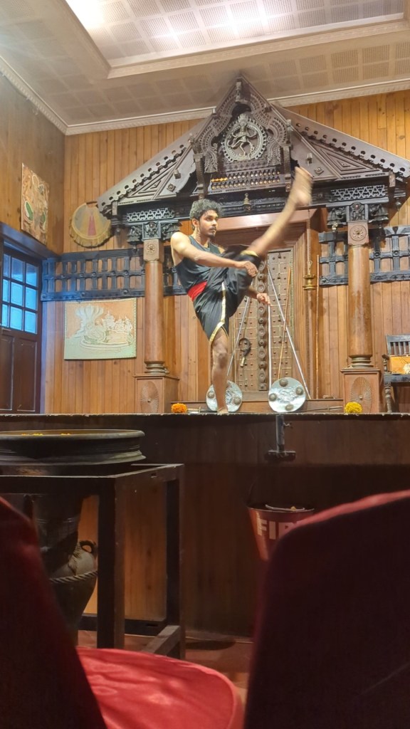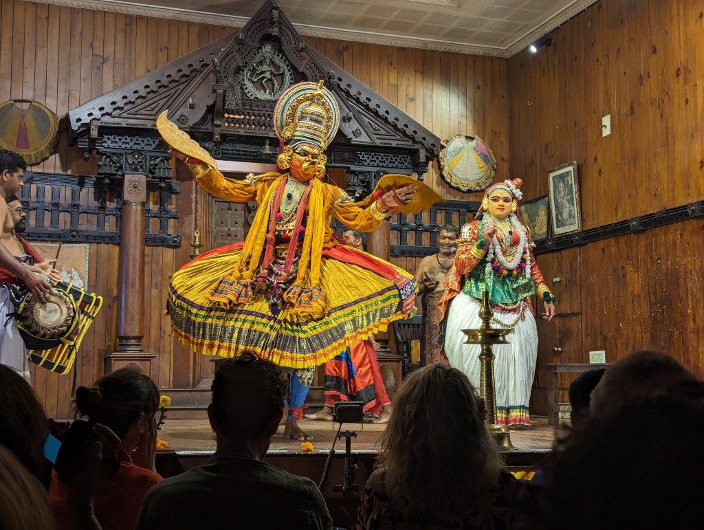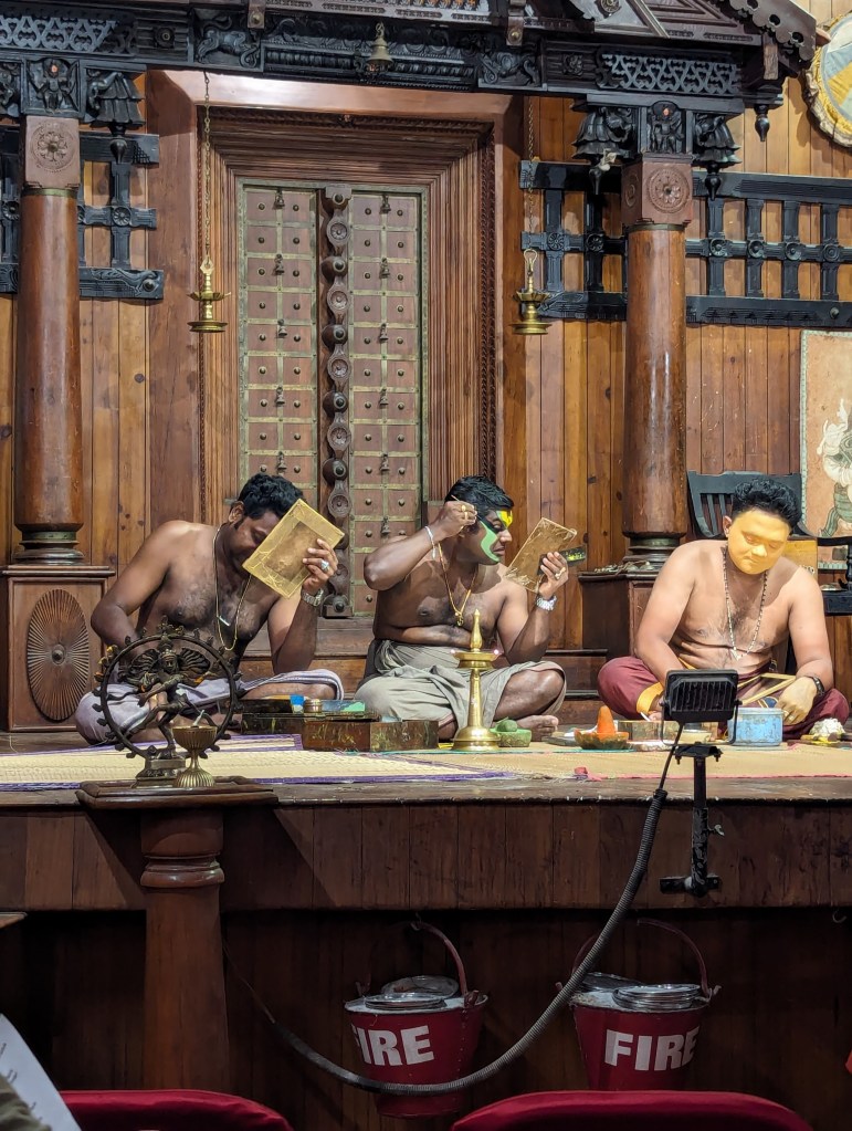 We were at the right end of the city to rickshaw back to Fort Kochi across the bridges that link it to Willingdon Island and then to the mainland. Once home and rested, we set out once more into Fort Kochi and to the same Kerala Kathakali Centre theatre as we had gone to the previous night, this time to watch the martial arts demonstration.