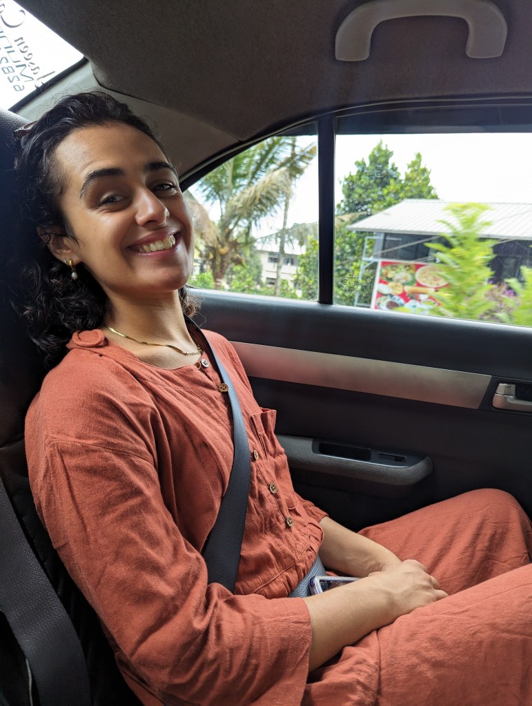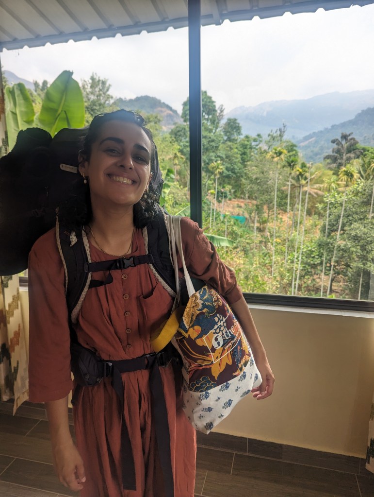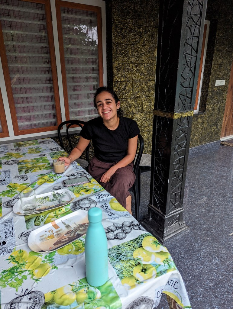 We woke early, as our taxi was booked for 8am. Sheeba had made us some jaggery pancakes and a huge plate of fruit for breakfast, and sat with us whilst we ate. All packed, we said our fond goodbyes to Sheeba and Ashley, and made for the taxi.