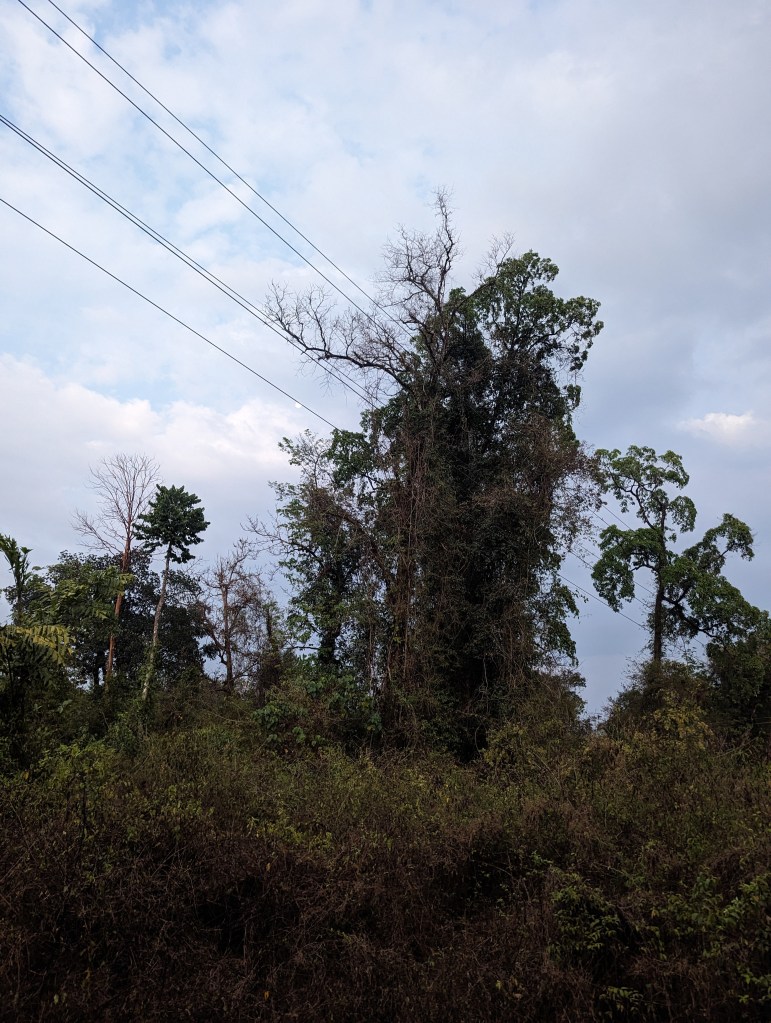 As it became properly dark, we got back into the car and drove through some small villages on the way to find a mottled owl. We pulled up on a track by a field, and Vinod went ahead with his owl calls then beckoned us forward. He pointed to a pitch black bough of a tree above us and told our friend from Chennai to get ready. Clicking on his torch, he illuminated an owl sitting on the bough above us, looking directly at the four of us looking up at him. It was an amazing sight to see, and nearly as amazing that Vinod had located him in the darkness. Our friend took his photos, and it was only when it was too late that it occurred to me that the owl was close enough for me to take a photo with my phone camera. After a couple minutes, Vinod turned off the light and we drove back to the homestay. (Don’t look too hard at the below photo, there’s no owl in it).