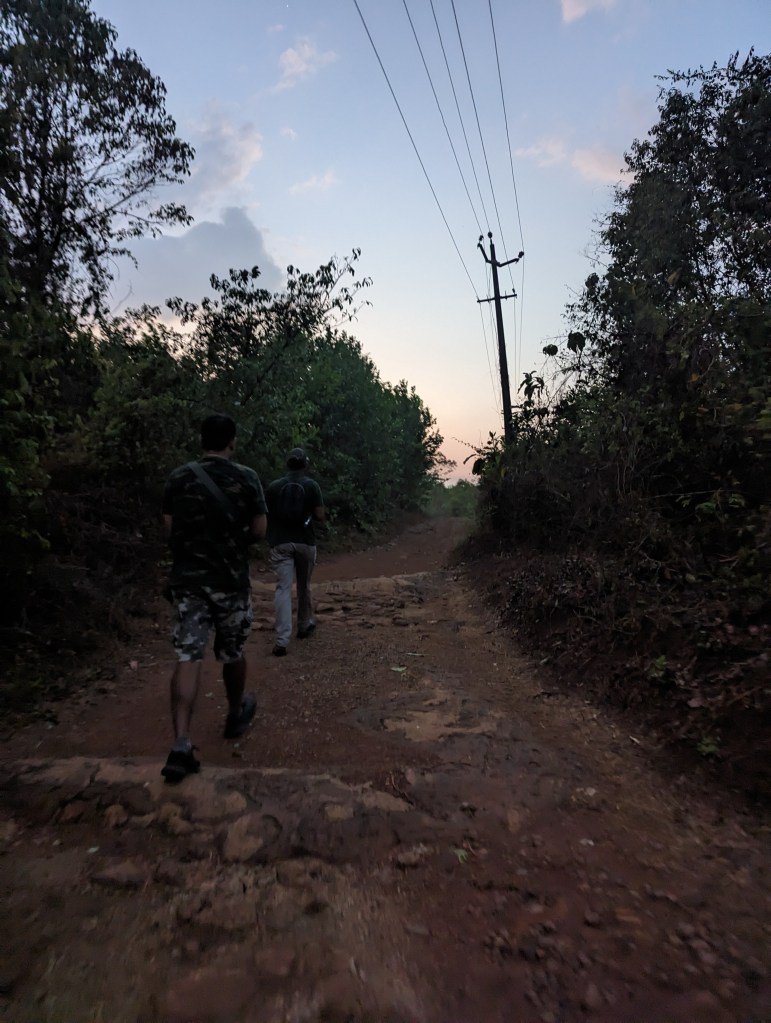 We got out at a forest track, and watched Vinod work his magic to try and attract/find/track our friend’s target birds that could be seen at that time of day, the Indian pitta and the nightjar. As dusk fell, we walked to and fro on a dusty track whilst Vinod cupped his ears and played a variety of bird-call tracks from his portable speaker. He had an incredible ability not only to hear bird calls inaudible to us, but identify the species and it’s direction and distance amongst the myriad of other insect and bird sounds, not to mention passing rickshaws and motorbikes. In this way, we were able to track the pitta and the nightjar, though our friend wasn’t able to photograph the latter and bitterly reprimanded himself for his slowness before chuckling and resuming his normal cheery demeanor.