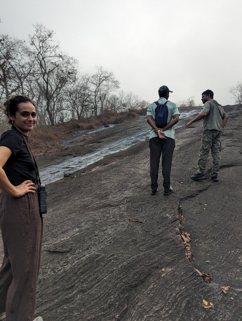 We got up early as planned, and sat out with a coffee that Vinod’s mother had kindly made for us before we set off. We were accompanied by our friend from Chennai again, and the four of us drove in a different direction this time to find a good spot to see several different species that we on our friend’s target list. We pulled up by a slope of granite rock in the jungle surrounded by dead trees which offered a perfect view of any perched birds without the foliage getting in the way, and stayed in this area for some time.