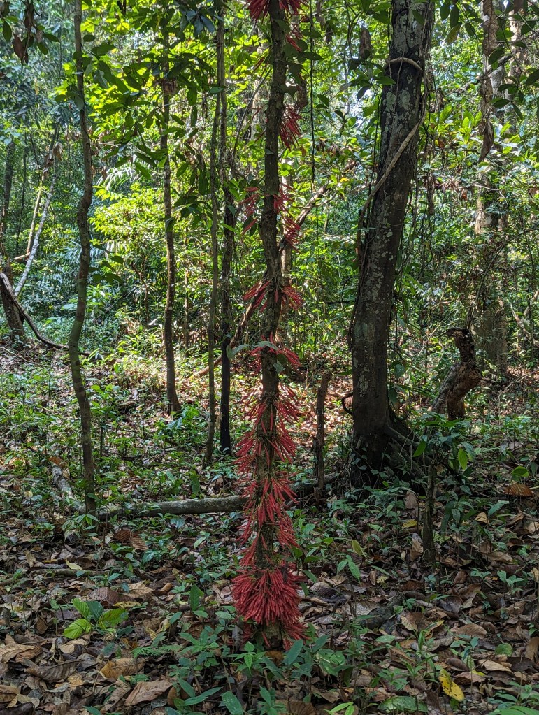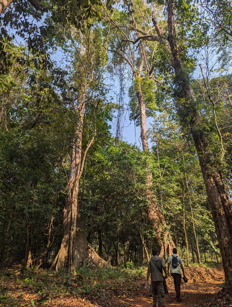The morning started misty but the sun quite quickly burnt the mist away and the day became hot and muggy. Throughout the course of a couple of hours, we spotted a variety of endemic and beautiful birds which our friend was exceptionally excited about though often failed to photograph. On several occasions where he thought he’d got a decent photo, Vinod would look at it over his shoulder and shake his head sadly or tut disapprovingly. These included greater and lesser flameback woodpeckers, malabar parrokeets and malabar parrots (the only Indian parrot species), and the famed trogon which was only to be found in two places in India and, somehow, Costa Rica (see last photo for a Malabar trogon.)