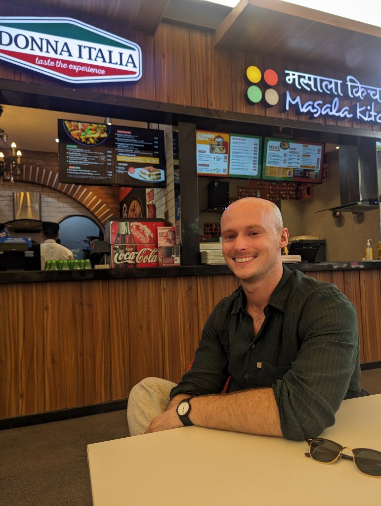 Once in Mumbai, we had to make the journey from Terminal 1 to Terminal 2 (several kilometres away), which we had to do when flying to Kerala right back at the start of the trip, as our rickshaw driver had dropped us at the wrong terminal. We had learnt from our mistake there in waiting for the shuttle bus as it came irregularly, and even then you were unlikely to get onboard amidst the throng. Instead, we ate a leisurely lunch in the outdoor food court and walked round to get a rickshaw from the rank to terminal 2, feeling like old hands at travelling.