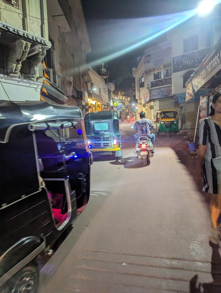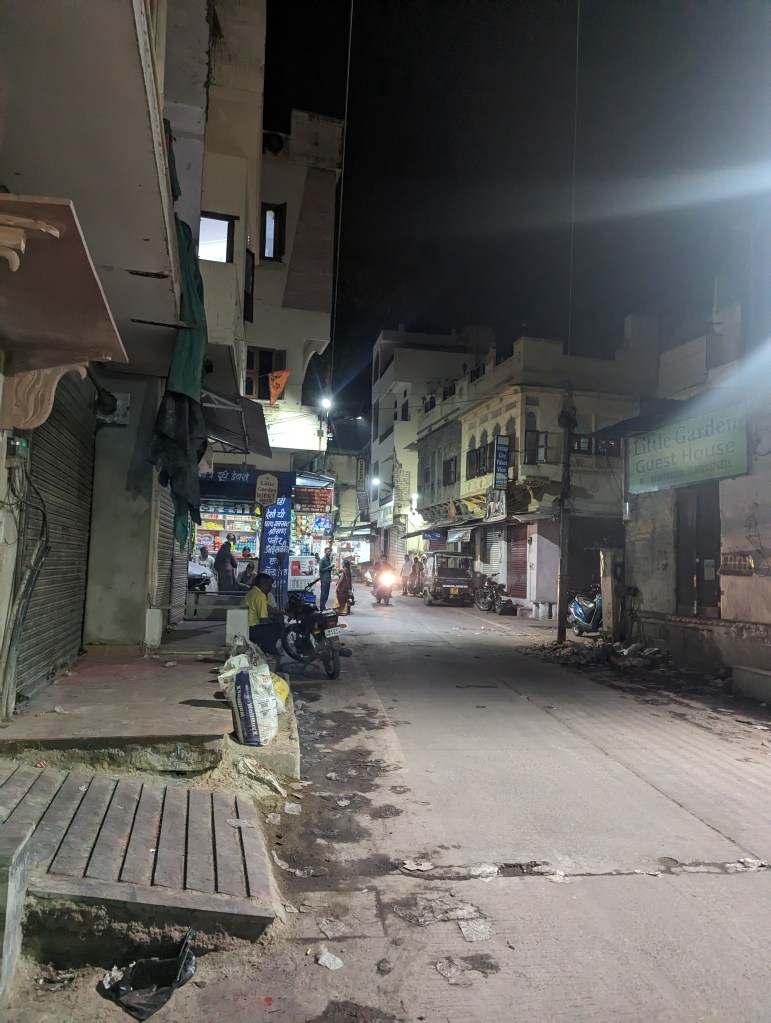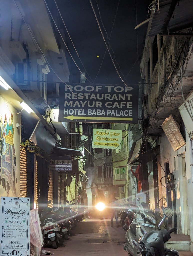 The toothless but friendly old taxi rank manager, who I had previously told that we definitely didn’t want a taxi because we had one booked thank you very much, came over to us and brought us to a beat up old cab. The driver wandered about for a minute, then got in and drove us the thirty minutes or so through to the dark towards our hotel right in the centre of Udaipur.