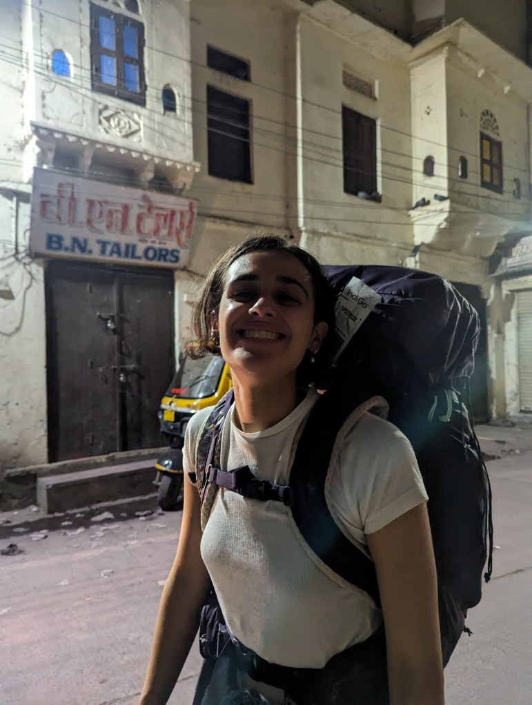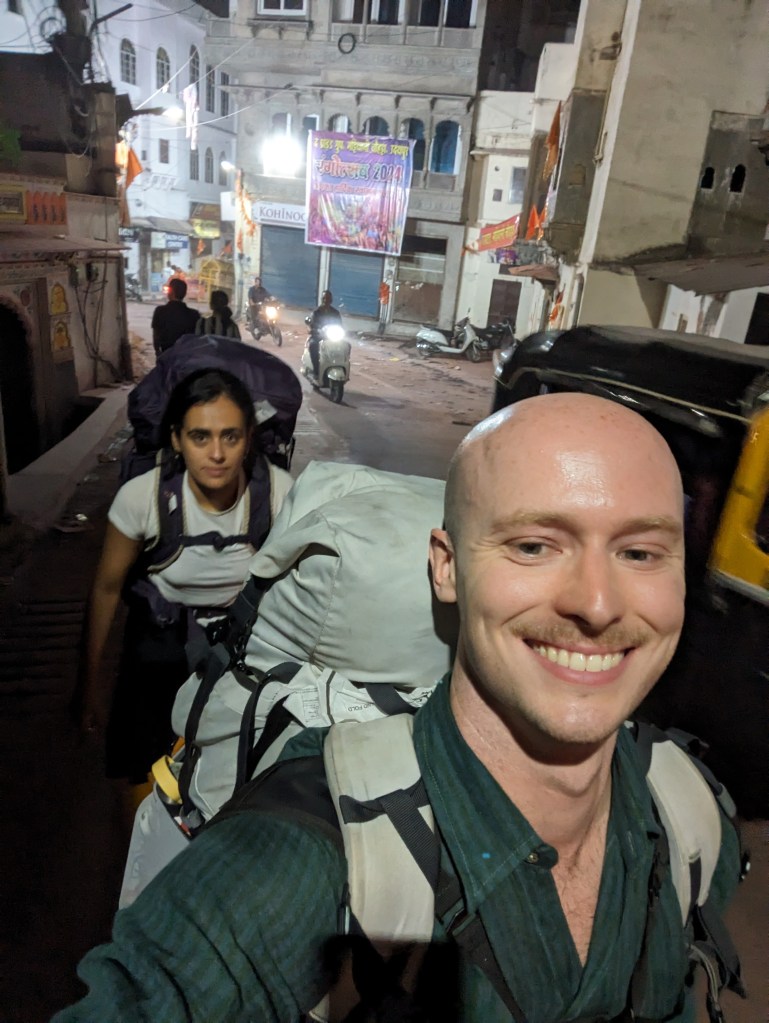 After dropping our things, we headed up to the rooftop restaurant for food. North Indian cuisine seems to bear more resemblance to what one might get in a British Indian restaurant, which was very tasty and will certainly help us regain the pounds lost in yoga school. The restaurant manager also had some Kingfisher cans in the fridge, which I’m not sure he strictly was supposed to be selling given he ran them through on the till as “peanut butter masala”, but we were grateful for anyway. After eating, we headed back down to the room and promptly to sleep.