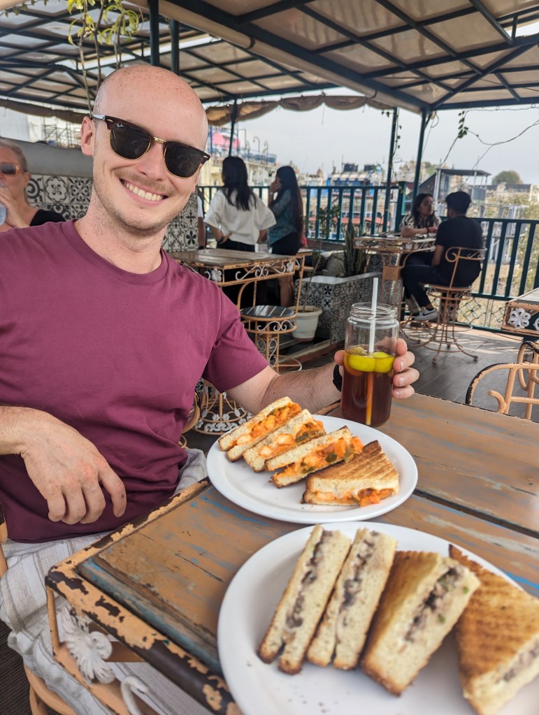 Given the food for dinner the previous night was pretty good, we went back to the hotel’s rooftop restaurant for breakfast. The view over Jagdish temple in the daylight was just as captivating, but the breakfast was relatively underwhelming. In the light of day the hotel’s lack of attention to detail was more apparent, with slightly dirty towels and grimy corridors, but we decided that the room was spacious enough and the location central enough to make staying worthwhile. We spent most of the morning unpacking and generally pottering around, then headed to a recommended cafe for coffee and lunch.