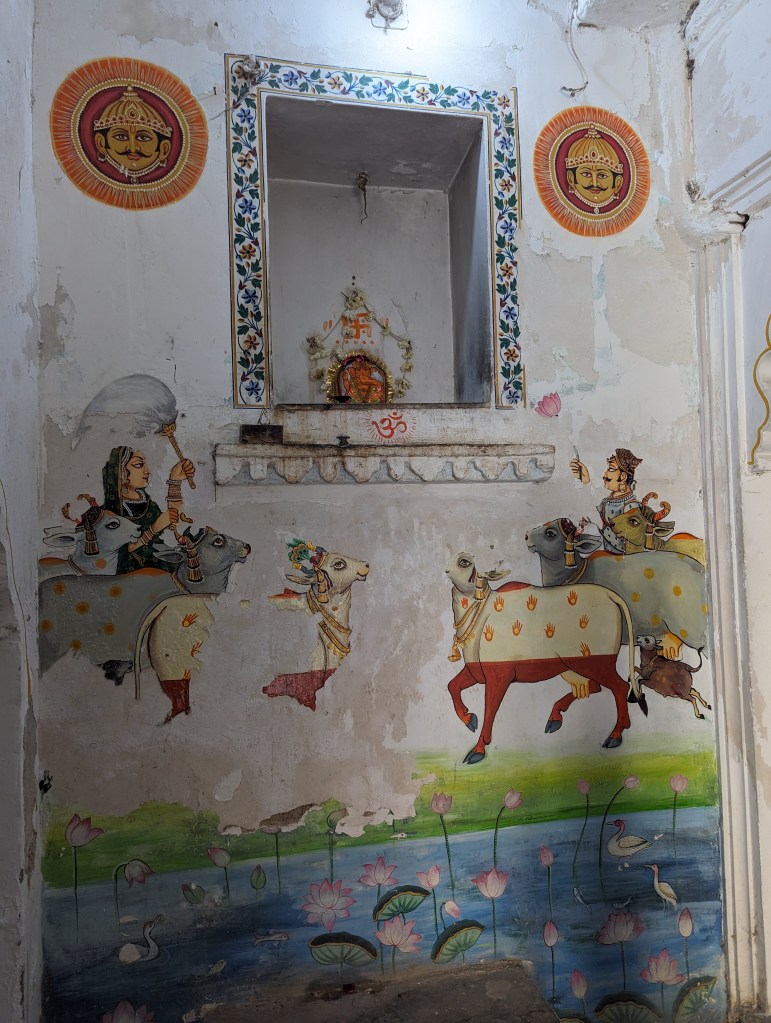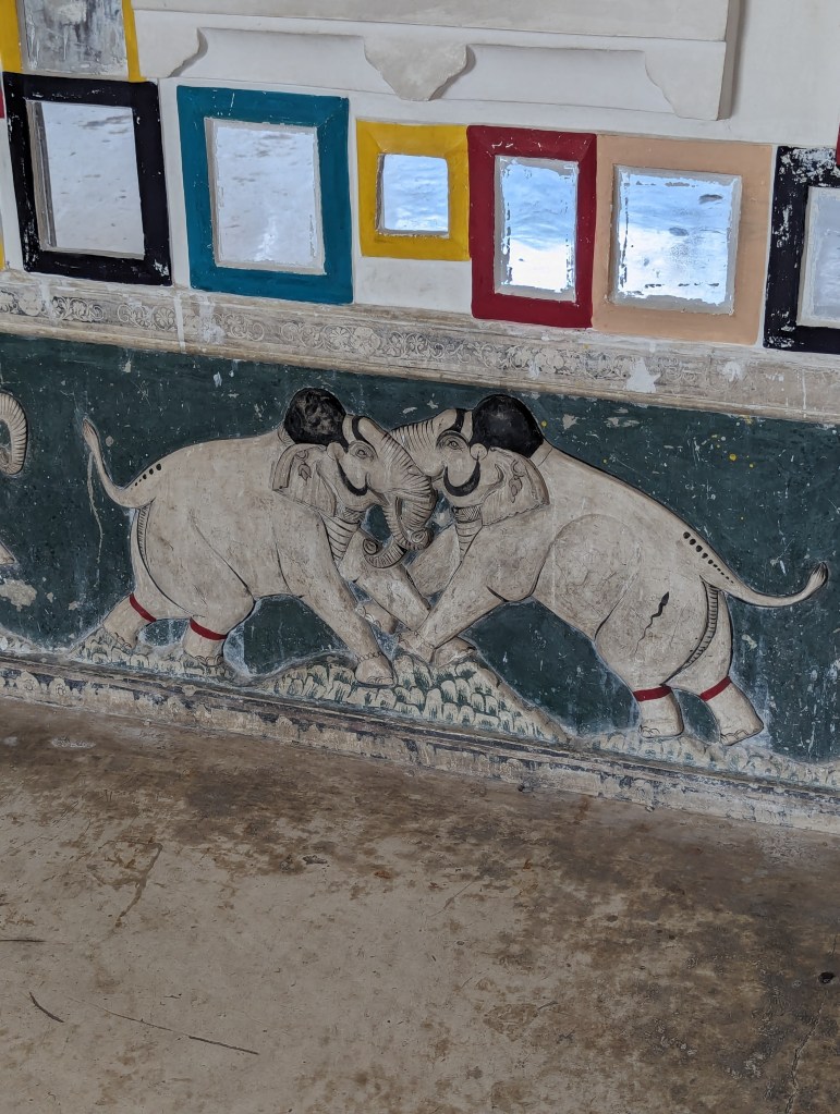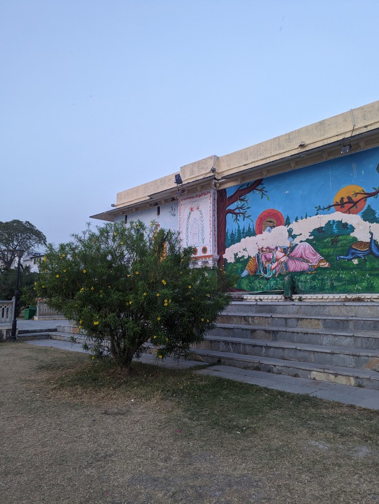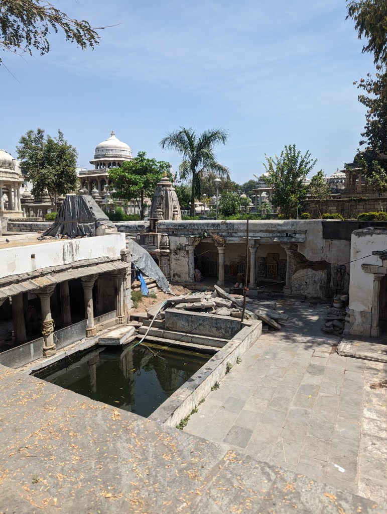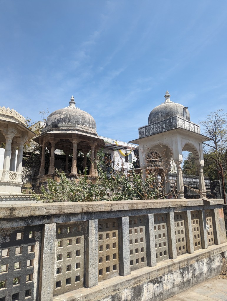 We’d booked an 8.30am yoga class on Thursday morning, so we headed there before breakfast. The class was in a temple on a ghat overlooking the lake, and was a welcome gentle start to the morning. We went back to Edelweiss on the walk home for breakfast, then ventured into the city to pick up a moped that I had booked the night before. There are a few attractions in Udaipur a little way out from the city, so having a moped for a few days is a economical way to get around without having to depend on rickshaws. The moped somehow cost only 350/- (£3.50) a day and, once I got the hang of it, was pretty easy to drive. The Indian roads are undeniably chaos, but so much so that no one can drive very fast and everyone expects everyone else to do something stupid at any moment. As such, they felt pretty safe and in any case we weren’t going very far.
