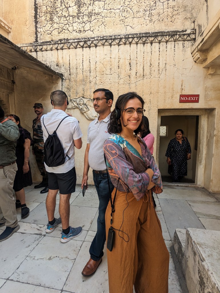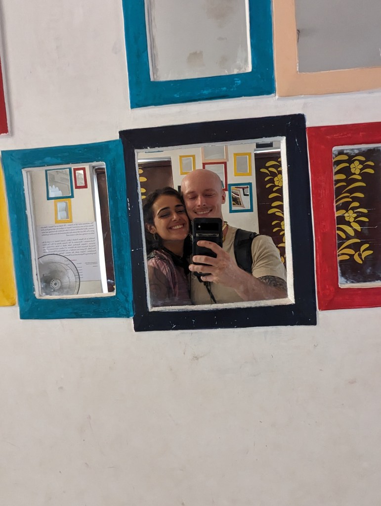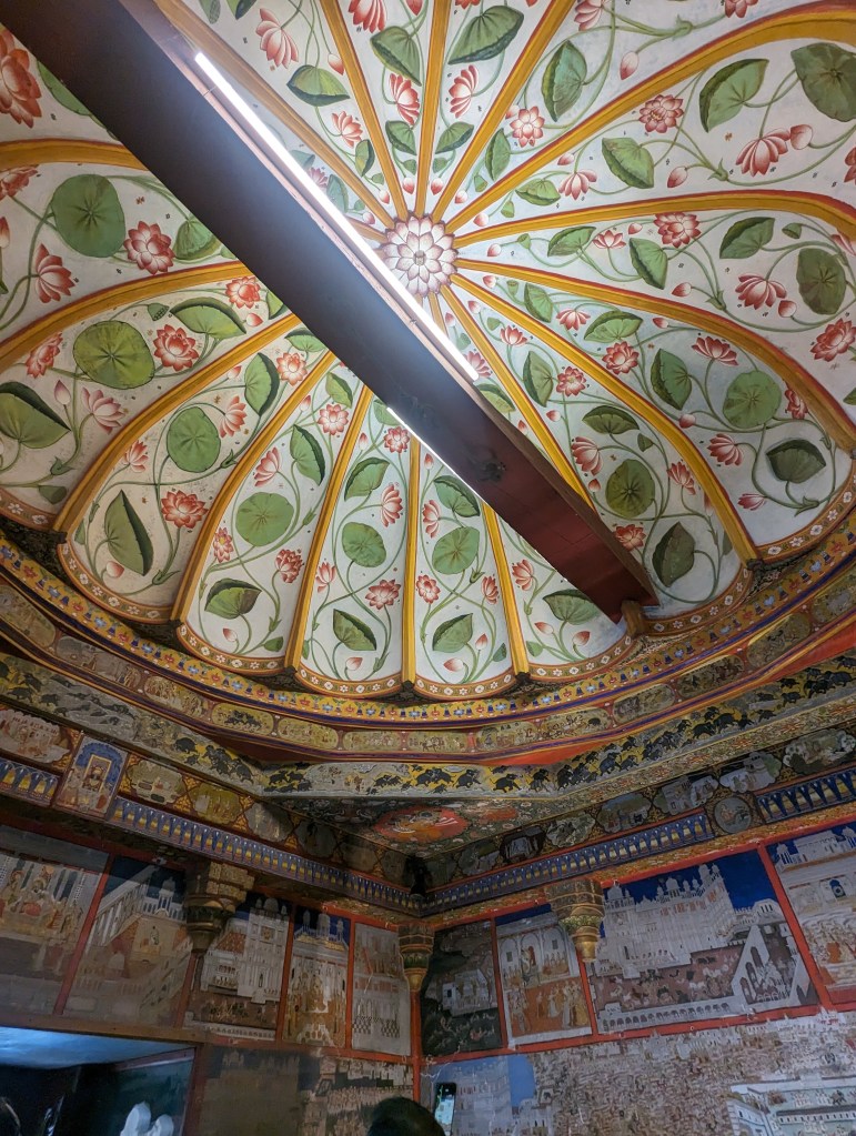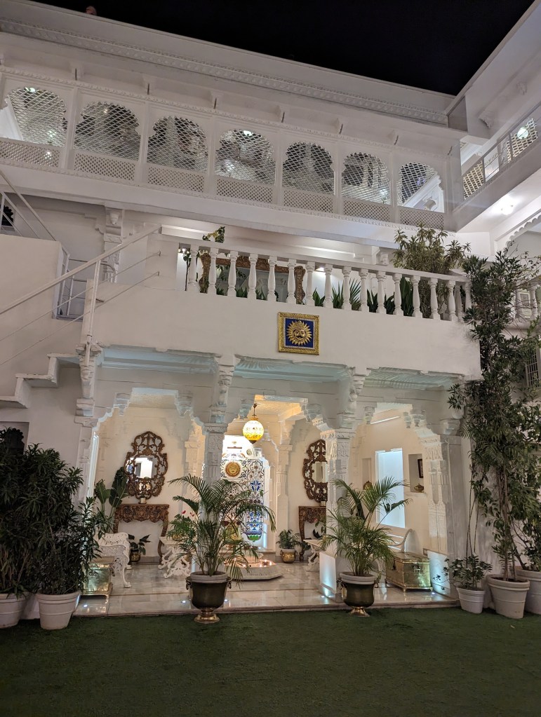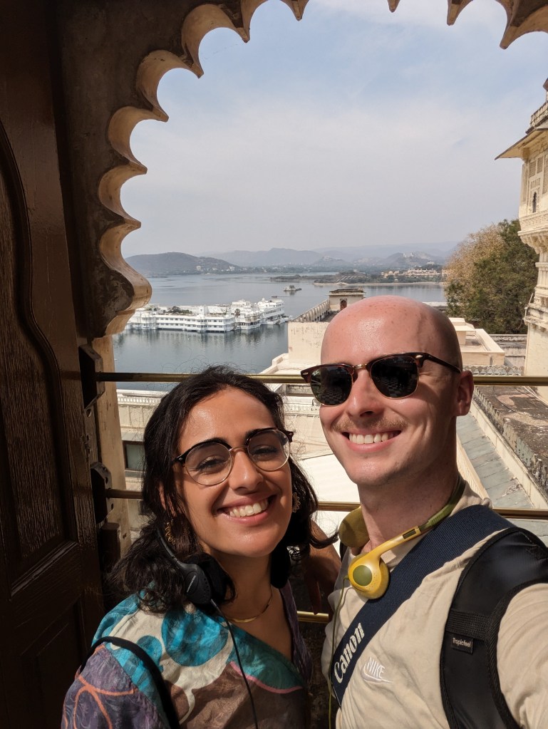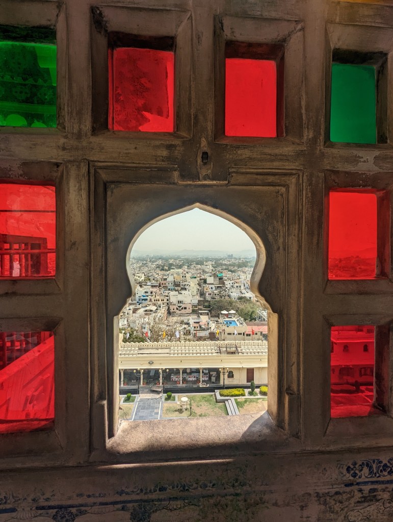 We decided to forego the hotel breakfast on Wednesday and went to another cafe, Cafe Edelweiss, closeby instead which did us great coffee and a bacon & egg sandwich (for me) of all things. Feeling that we had made a very good start to the day, we walked then to the big attraction of Udaipur – The City Palace. The City Palace was the home of the longest continuous dynasty of rulers either in India’s or the world’s history, I can’t remember which. The palace’s massive sandstone facade was situated on a hill by the lakeside looking over the rest of the city. We paid entry and for audio-guides, and made our way around the disorientating network of tiny passageways opening suddenly into rooms made of glass, leafy rooftop courtyards, and bedrooms covered all over in intricate murals. Other than me being accosted by young Indian men for more or less forced selfies, it was well worth the nominal entrance fee.