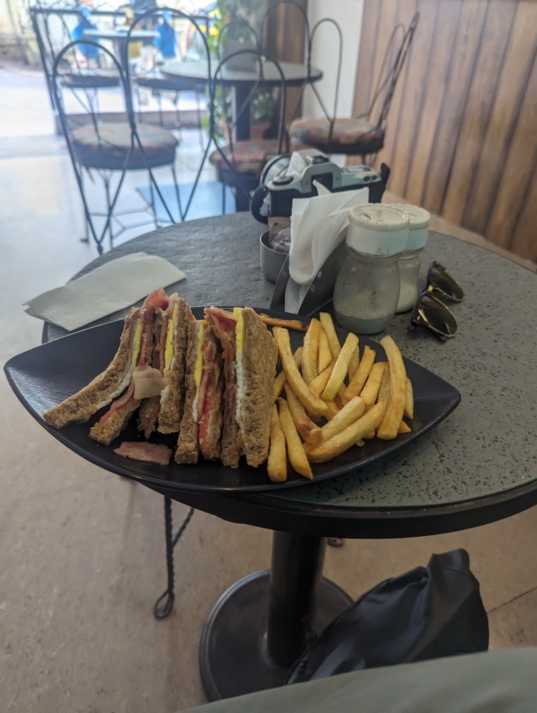 In order to not look too conspicious, Ellie went back into the mall and I sat with the bike. It was the middle of the day without much shade so I had to keep my helmet on to stop my head from burning, and I could see my nemesis, the sugar-cane man and his associates, glancing over at me from time to time. Additionally, there was a man with his family of 8 or so children sitting around a bustop just behind me who yelled almost constantly. All in all, not my favourite 45 minutes of the trip. However, sure enough the locksmith arrived and filed down a new key by hand in about 5 minutes, costing me only 400/- (£4). I drove the bike round the corner, and parked up but couldn’t convince myself that it wasn’t going to be found and promptly nicked by the sugar-cane man and friends. I called Ellie and we headed off somewhere else for lunch feeling a little beleaugered. As it happens, the McDonalds in the mall was closed for renovation anyway.