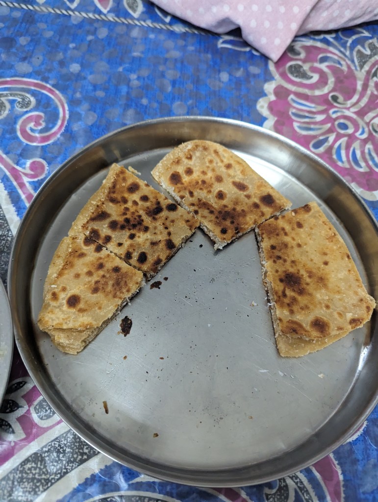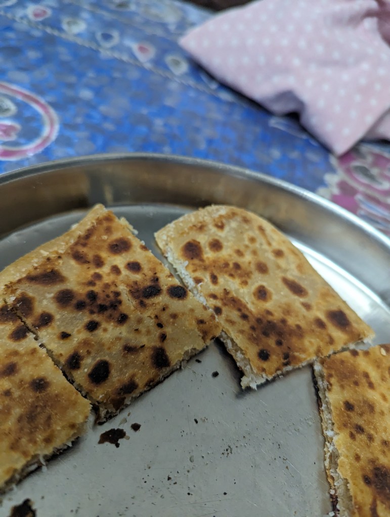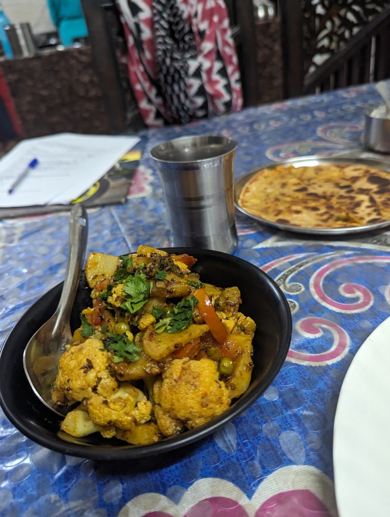 By the time we had come out the other end of the palace the day was getting warm. The heat in Rajasthan has, so far at least, been far more comfortable than that in the south, largely by virtue of it being so dry. It does, however, still reach about 34-38C in the middle of the day. We had a cooking class booked for the afternoon, and the organiser had explicitly told us to “come hungry”, so we stopped by a local restaurant for some onion pakoras as a snack for lunch, and headed back to the hotel to escape the heat of the day.