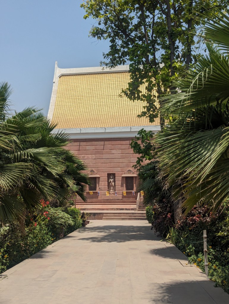 We booked an Uber to take us the longer drive up to Sarnath, and were dropped off by a small coffee shop to get a bite to eat. The cafe was deserted and cool, and made the perfect stop for a coffee and a sandwich before braving the heat of the day. We went first to the Thai buddhist temple, which boasted a huge standing statue of the Buddha in amongst gloriously green and lush gardens. From there, we walked to the Deer Park, which was supposed to be the site of the Buddha’s sermon.