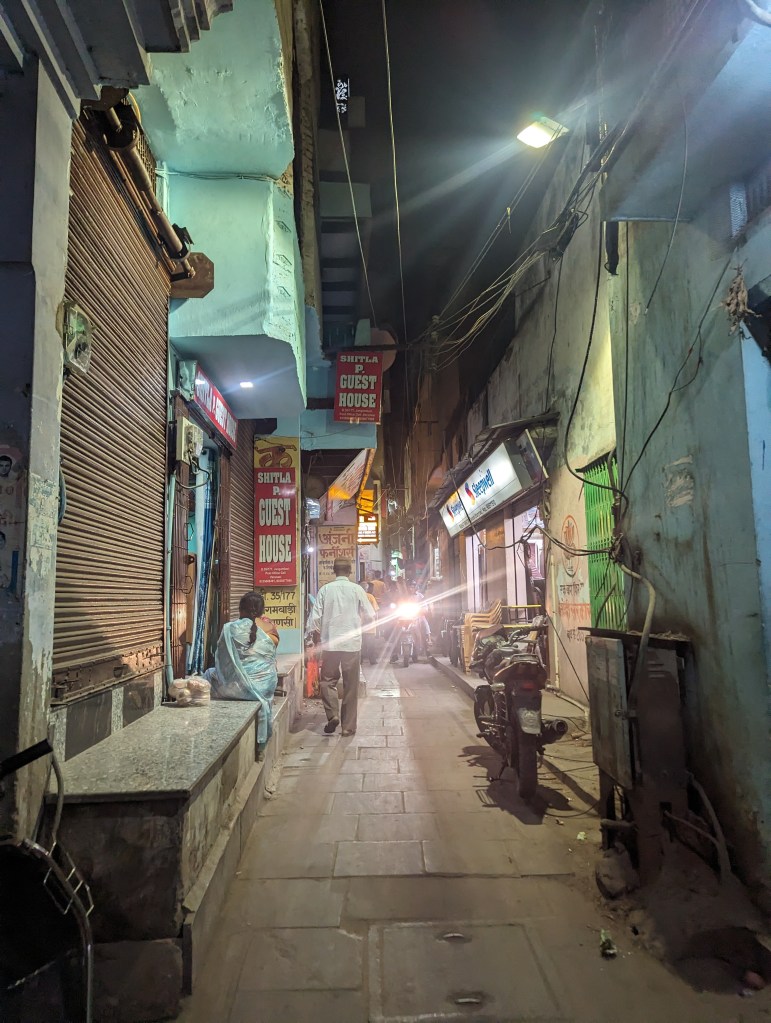 We walked out to the main road and flagged a rickshaw, who inevitably had never heard of any of the districts or roads near our homestay, even though it was only 10 minutes drive away. We made our bone-shaking way (rickshaws in Varanasi seem to have a lack of suspension uniquely unsuitable for the city’s terrible roads) via my Google Maps directions towards the homestay and, after refusing the rickshaw driver’s attempt to get us to pay more than agreed for no reason, made it in at 11.01pm just as the gates where being locked.