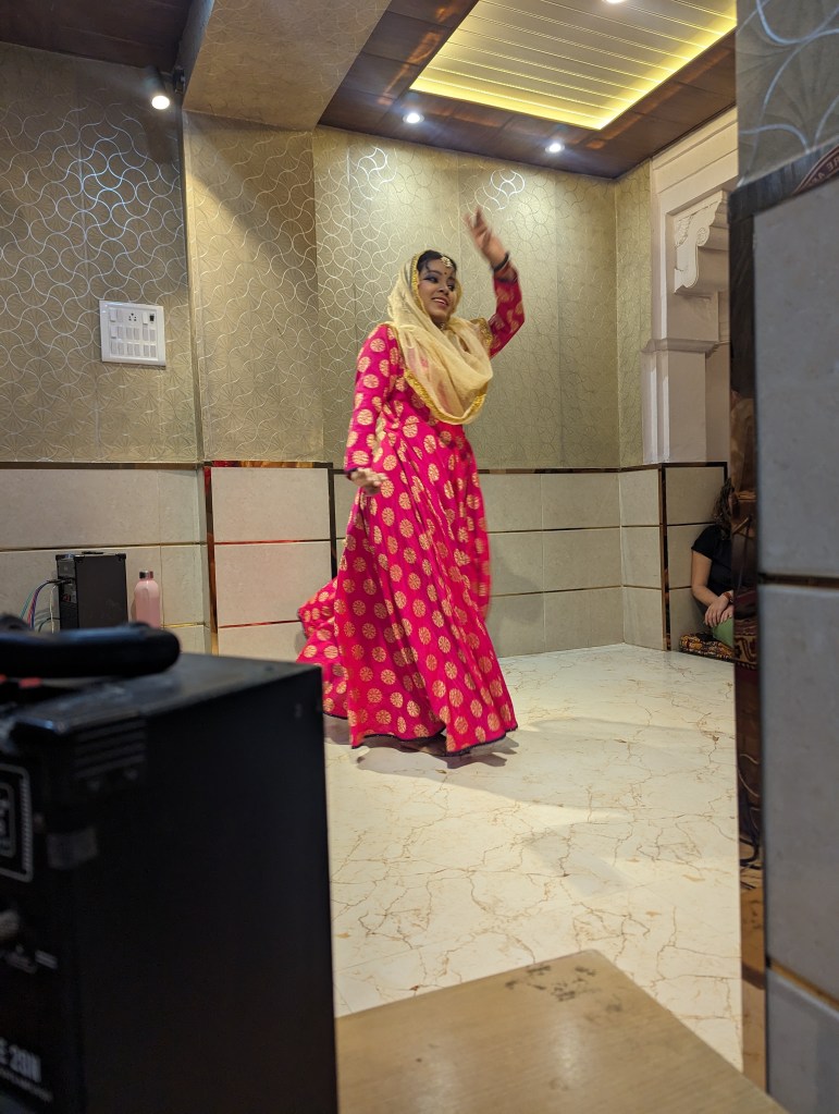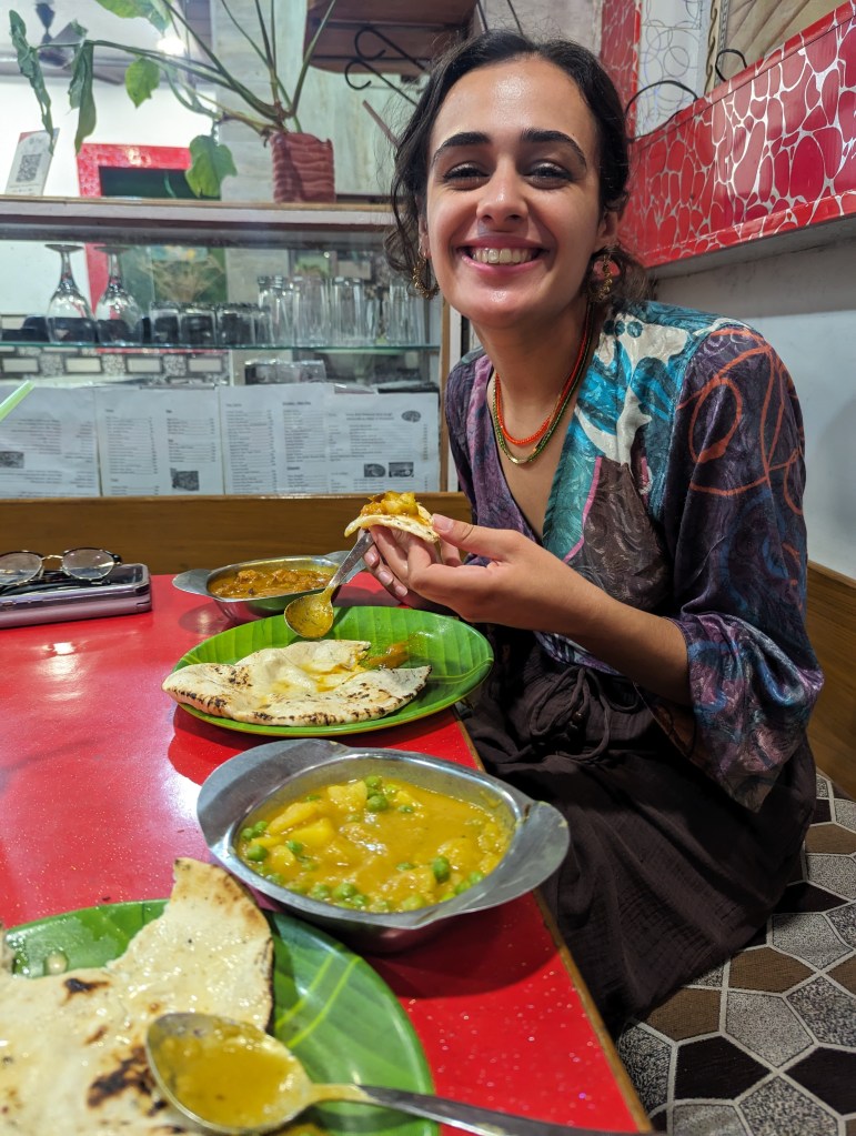 Eventually it was time for me to head off for a private dance class I had booked with the classical dance performer we had watched a couple of nights earlier. I’d booked the class prior to seeing the show featuring her rather stern and public chastising of her accompanying musicians. As we all know I do not love a chastise, so I steeled myself as I took off my birks (ed. sandals) at the deserted stage from the performance. I’d signed up to learn some of classical dance form she had been performing, Kathak, which I have never tried before but looked intriguing especially after witnessing her 53 spins. She showed up 15 minutes late looking characteristically surly and got straight on with teaching me the opening sequence – in which you perform a series of arm movements with spins and squats to bow to the audience/dance floor, whilst also making classical-dance specific sounds. For some reason she seemed to think I possessed some natural Kathak flair and cheered up immediately, leading to a reasonably intense hour of rhythmic foot tapping, but I honestly love to dance so much I didn’t mind the intensity at all and the hour felt like 10 minutes. I may or may not have already emailed a kathak teacher back in Reading.
