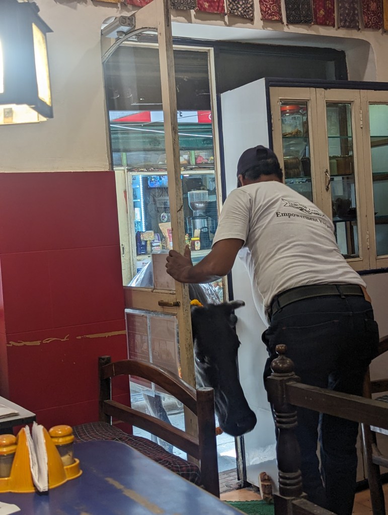 It was gone 9.30pm by the time the performance had finished, and we had a curfew of 11pm when the gates of the homestay were locked and Harish & family were in bed. We were yet to have dinner, and so we popped into a small restaurant, called “Nice Restaurant” in the backstreets. We were the only customers and, though simple, the food was delicious. That said, given the time the owner/chef/waiter had to fire up everything again and make the food from scratch, so it was getting dangerously close to 11pm by the time we paid and left.