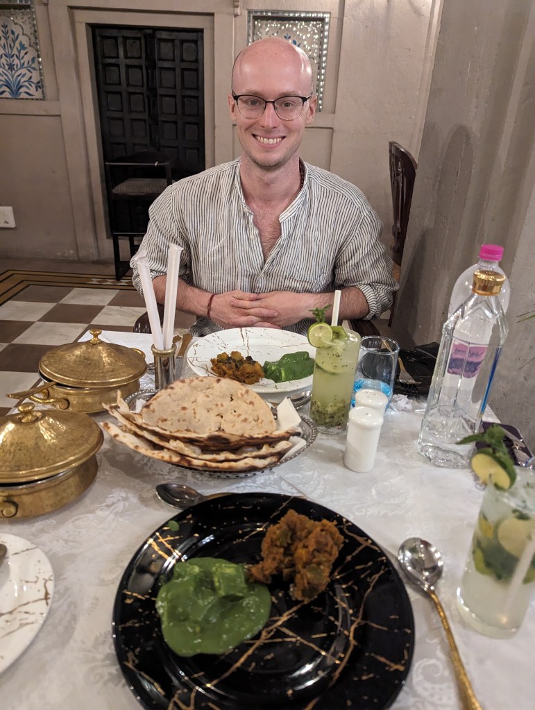 After a rest and a shower we were ready to face the Varanasi rickshaws again to get out for dinner. We headed for a deserted but nice restaurant called ‘Moonshiners’ presumably due to the fact it sold alcohol, and enjoyed very pleasant dal, beers and G&Ts. We remained the only customers bar a couple of men who seemingly just came to shot several whiskies, but it was a nice quiet place with again better curries than our previous fancy meal. We headed home with no issues this time and to rest up for our last day in the city.