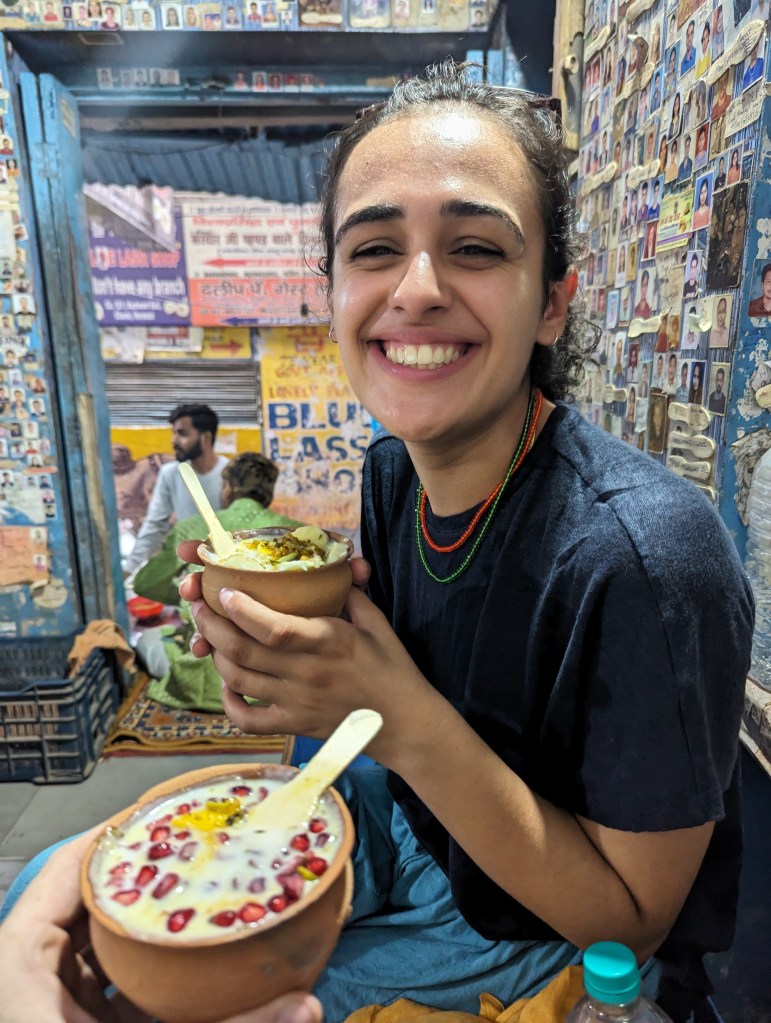 We changed in the ‘floating changing rooms’ dotted around the banks and headed for a mid-afternoon lassi from the famed lassi shop – complete with shaved flakes of sugared apple and a cupful of pomegranate seeds – before heading home. We hopped in to a rickshaw on a very busy main road, and began to feel a little suspicious as the usual fraught and difficult negotiations around price and them understanding where the homestay is were peppered with more than normal interruptions from other drivers. We hoped they were just particularly keen to steal our custom and headed off. The driver almost immediately picked up another 3 people and headed to their request in the opposite direction from ours. Eventually, after he had dropped them off and shouted back some things that sounded suspiciously like asking for more money, we got him to take us near home. As soon as we got out he demanded way more money than we’d promised, kept putting his hands on his keys and making to get out and demand it more forcefully. He was about half Rob’s weight but on closer inspection did look a little drunk and unhinged, however after a few minutes of faux-squaring up to Rob (won’t lie I took a back seat in this) and a very half-hearted intervention from a passing security guard, we slipped away down our side street without being further ripped off or coming to any harm.