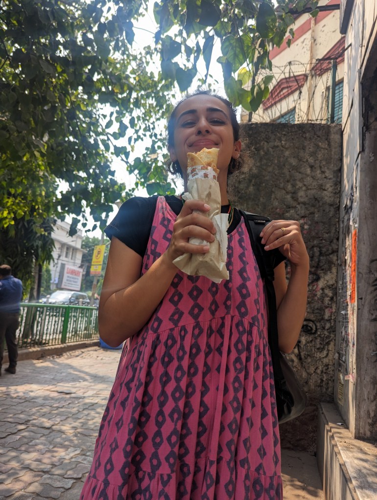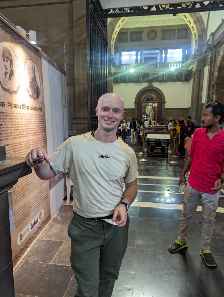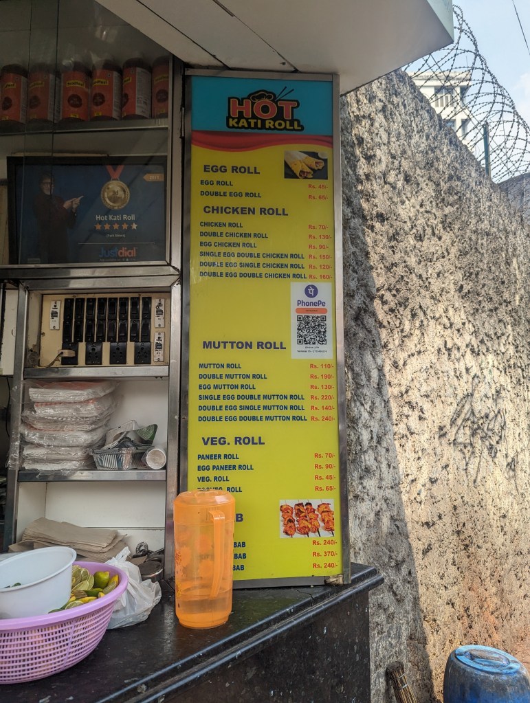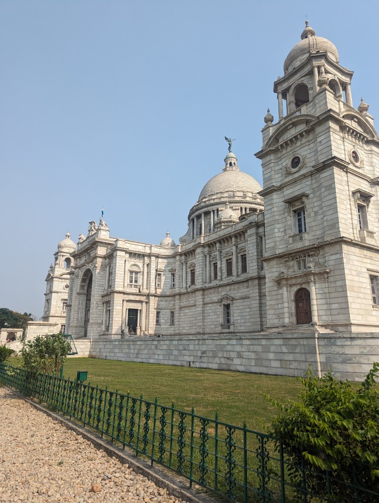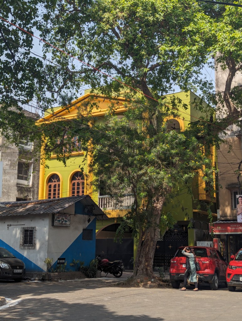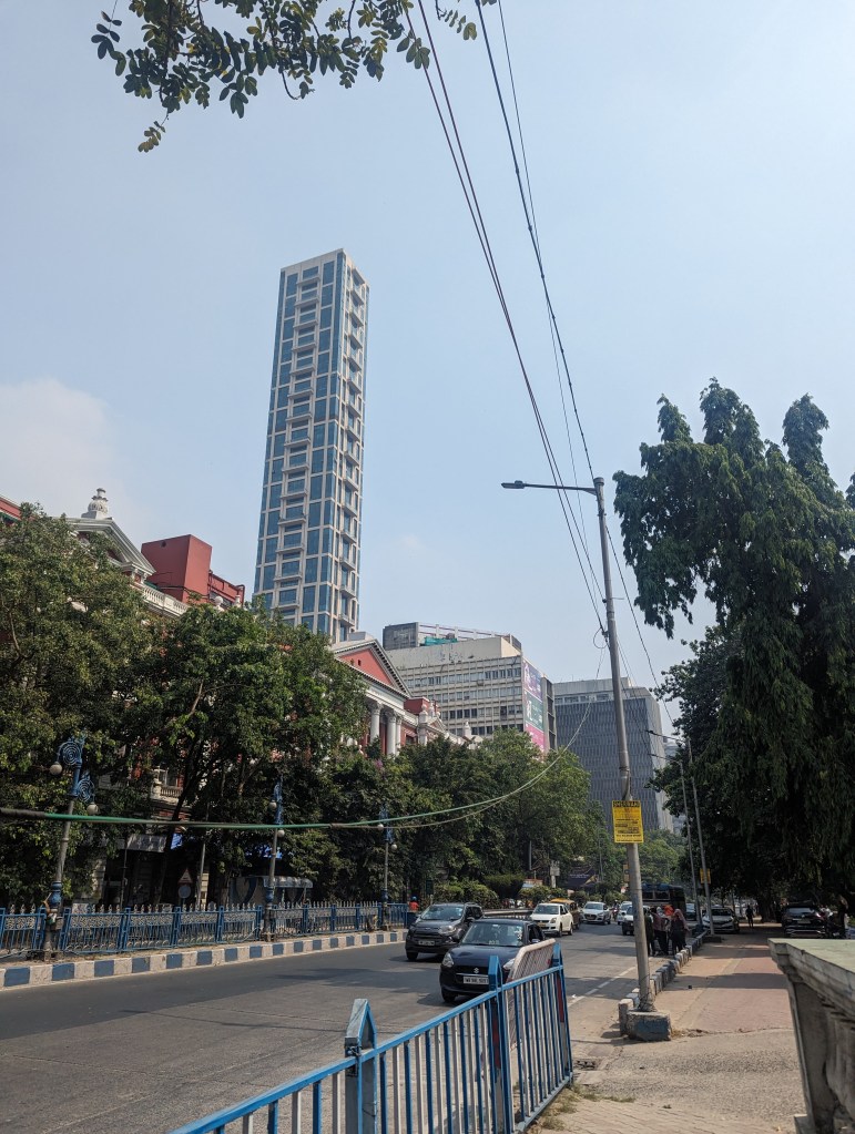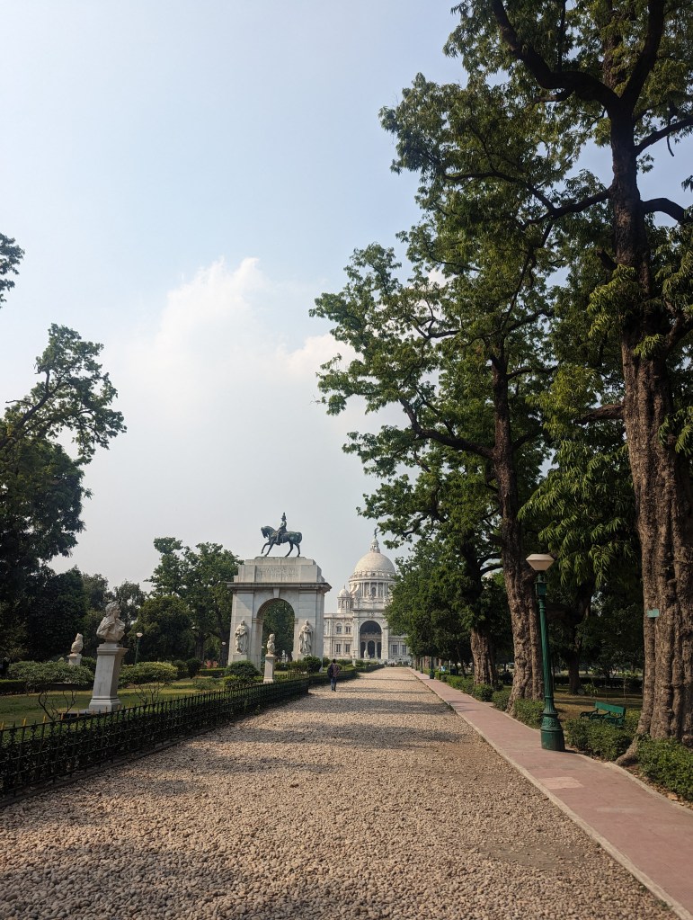 We had got into the very pleasant habit of getting up for a leisurely 9am breakfast, and Thursday morning was no exception. The breakfast was good as ever, and I’d been converted to the Bengali breakfast of a mild potato curry with fried bread over the eggs on toast. Once we had eaten and got ourselves ready, we headed once more by metro to Park Street and to a coffee shop just opposite the station entrance. The coffee shop, Blue Tokai, served really excellent coffee though the air-conditioning units were fighting a losing battle with the morning heat. We were actively sweating when we made it back outside and decided to really lean into it by having another street-side Kati roll from the famous hole-in-the-wall shop, which was as delicious as ever.