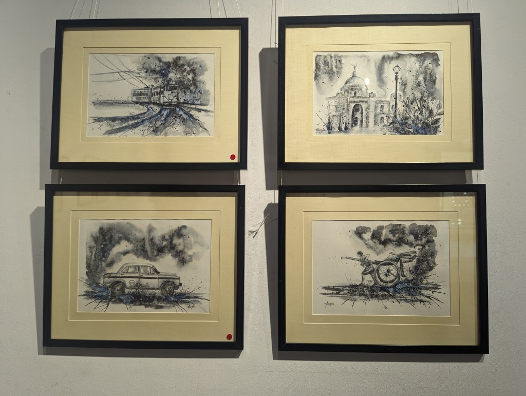 We walked down the side of Maidan, Calcutta’s Hyde Park, and to the Institute of Fine Art. The Institute was a small building nestled behind the imposing St Paul’s Cathedral, and had been notable by its absence from any guide books or recommendations we had read. Still, we decided that art galleries tend to be a cool place to spend some time, so we headed inside. Institute of Fine Art is probably a stretch, as the art-works seemed more to be displayed of local artists and art students, but nonetheless it was a nice break from the baking heat.
