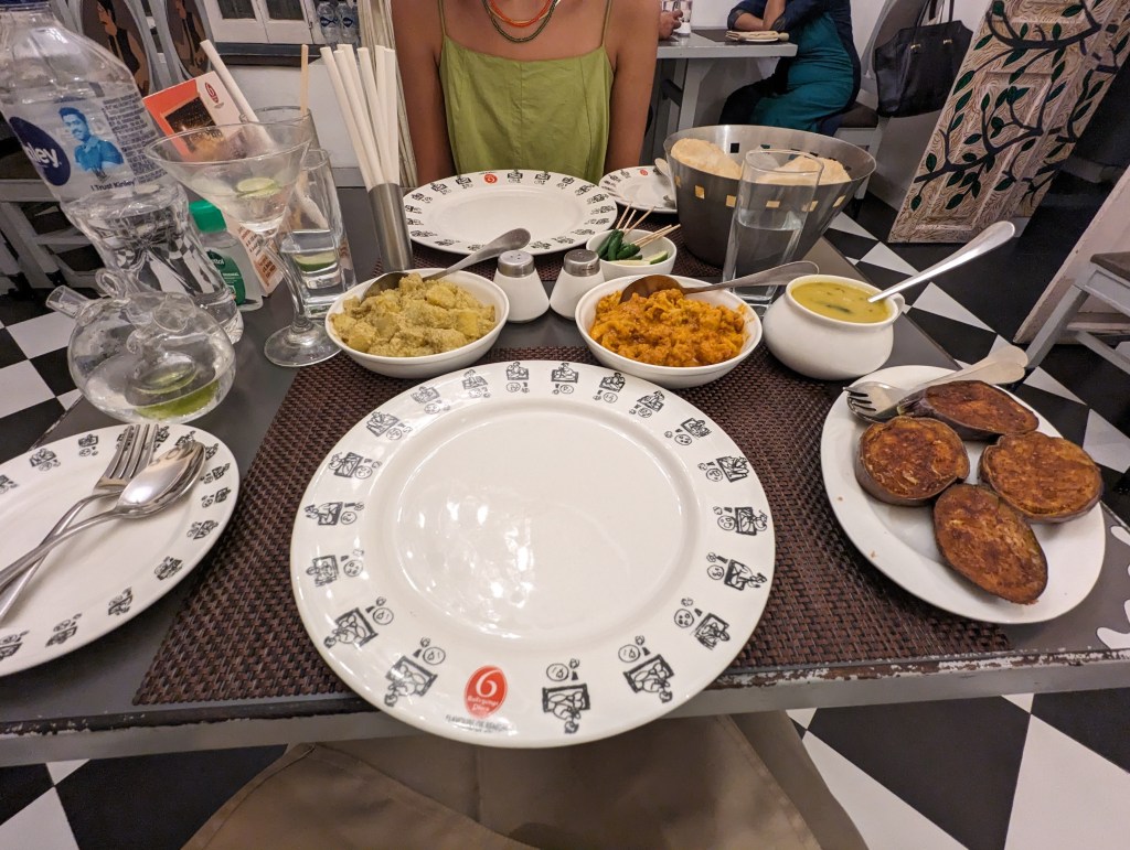 We had been undecided about where to go for dinner on Friday night, but felt that we should try a speciality Bengali restaurant at least once whilst in West Bengal. As such, we ubered out to “6 Ballygunge Place”, a recommended restaurant serving a range of Bengali cuisine. Bengali cuisine was quite different in some respects to North Indian food, and accordingly we had absolutely no idea what anything on the menu was. With the help of some friendly waiters, however, we managed to order a really quite sensational meal of potato in poppy-seed paste, cauliflower in a tangy tamarind sauce, a mild daal, shallow fried melt-in-the-mouth aubergine, and some hilarious mocktails served in strange glass contraptions. All together, it was one of the best meals of it’s kind we’ve had so far. Full without being horribly uncomfortable, we booked (yet another) Uber back to the hotel (NB – most Uber trips in Calcutta cost about 100-200/- or £1-2, so we aren’t breaking the bank with all the ferrying around!)