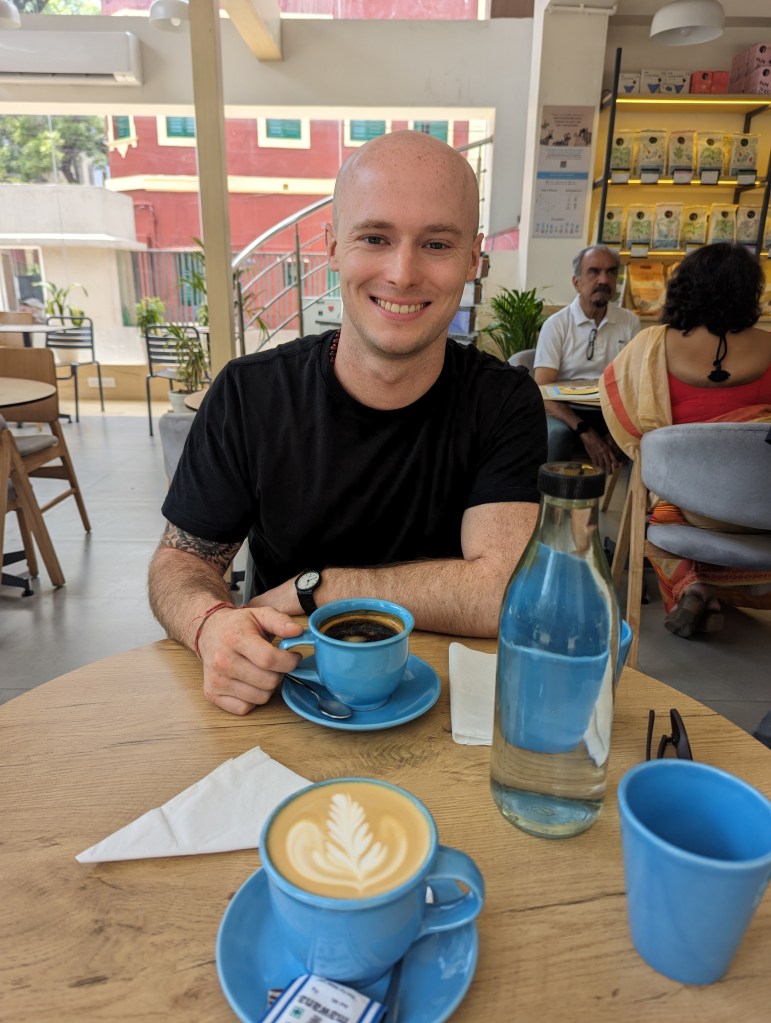 After one last lie-in in lovely Calcutta, we identified another branch of Blue Tokai just 2 minutes around the corner from our hotel – one of a very small handful of boutique coffee shops we’ve found in India that we could imagine ourselves happily tapping £4 for in an indepenent in London. This branch not only served the same perfect flat whites and americanos-with-an-extra-shots (no prizes for whose is whose), but was considerably more modern than the other one – with exceptionally good air con! We filled ourselves up for the day with a Shakshuka and veggie full English, enjoying the people watching in this modern and expensive looking Southern Calcutta suburb.