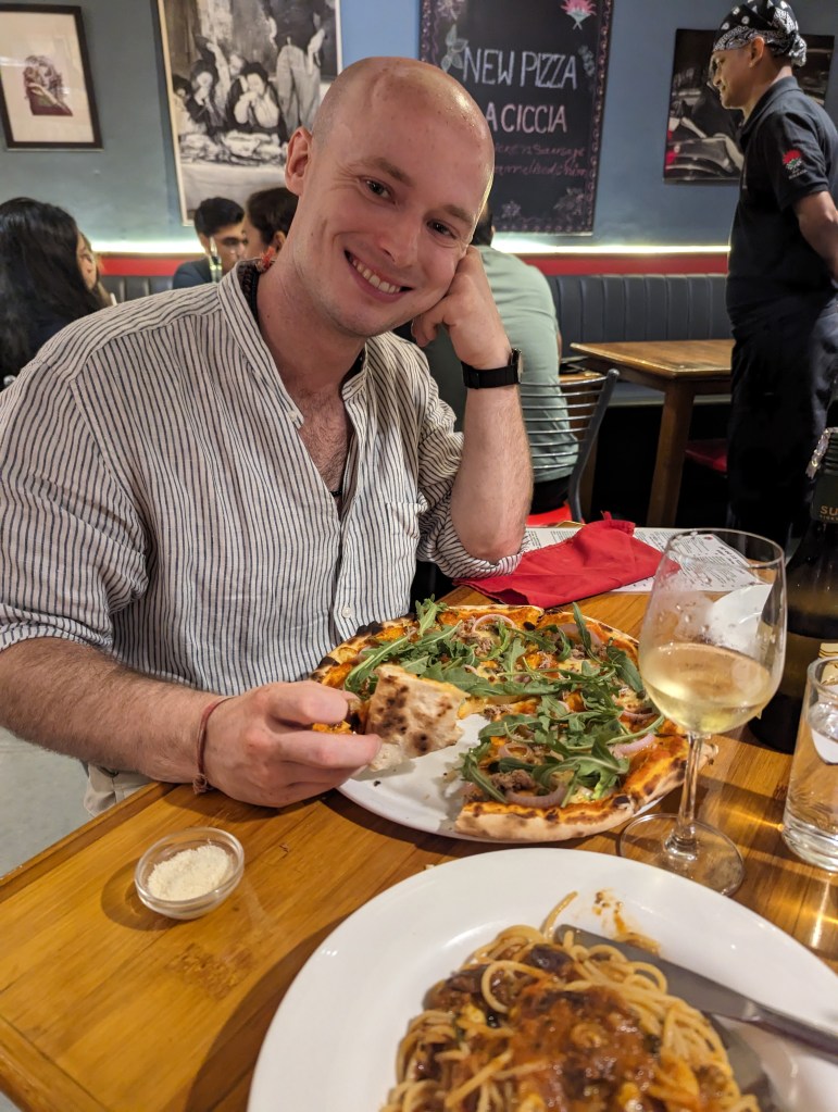 We decided to get a last taste of proper Western food in the big city before heading out to much more rural Darjeeling, so went to a recommended Italian for dinner. The food was indeed delicious, and we happily got through pizzas/pastas advertised as ‘big enough to share’ along with some tasty if earthy domestic wine for Rob (only a taste for me as I was, sigh, on my last day of one of the few antibiotics you actually can’t drink on). We got one last blissfully air conned 10p metro ride home before the final pack-up as we said goodbye to probably our favourite city of the trip so far.