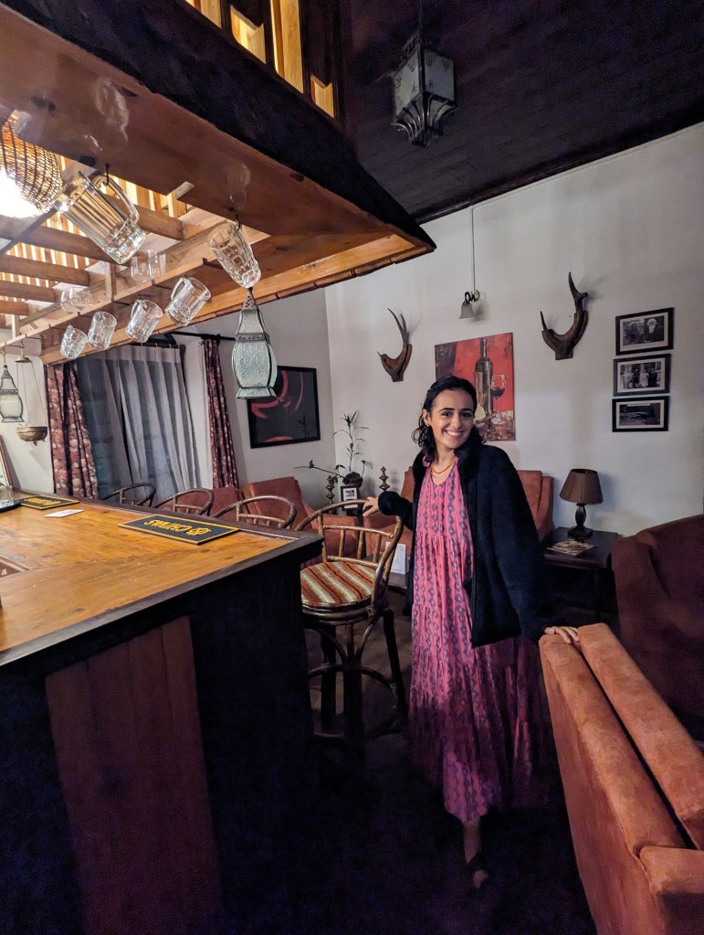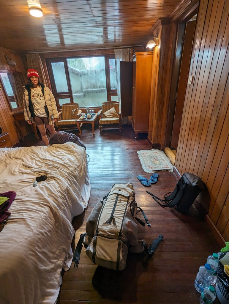 At 5pm, we set up the laptop to watch Grandma’s funeral all the way back in Moniaive. It was very poignant and sad to watch from so far away, but we were both very pleased that we were there for it at least virtually and in spirit. It was strange to get a mention from the minister as he looked at the laptop camera while we were sitting in our hotel room in the Himalayan foothills. After the funeral, we tried to have a G&T in memory of Grandma in the nicely appointed but slightly dusty and disused hotel bar. The impromptu bartender (who was just one of the guys who ran the bags up and down the stairs) told us they didn’t have tonic but they had lemonade instead, so we said we’d go elsewhere.