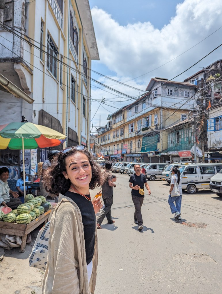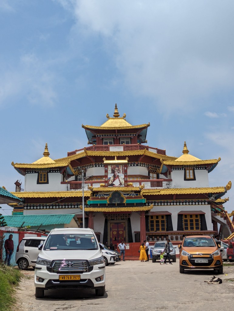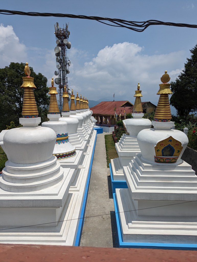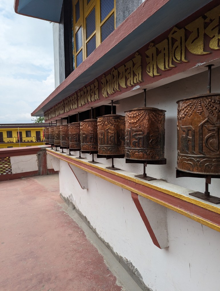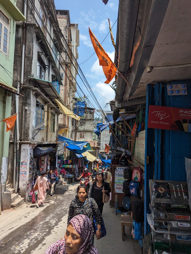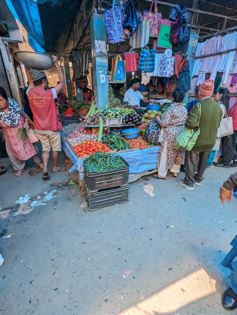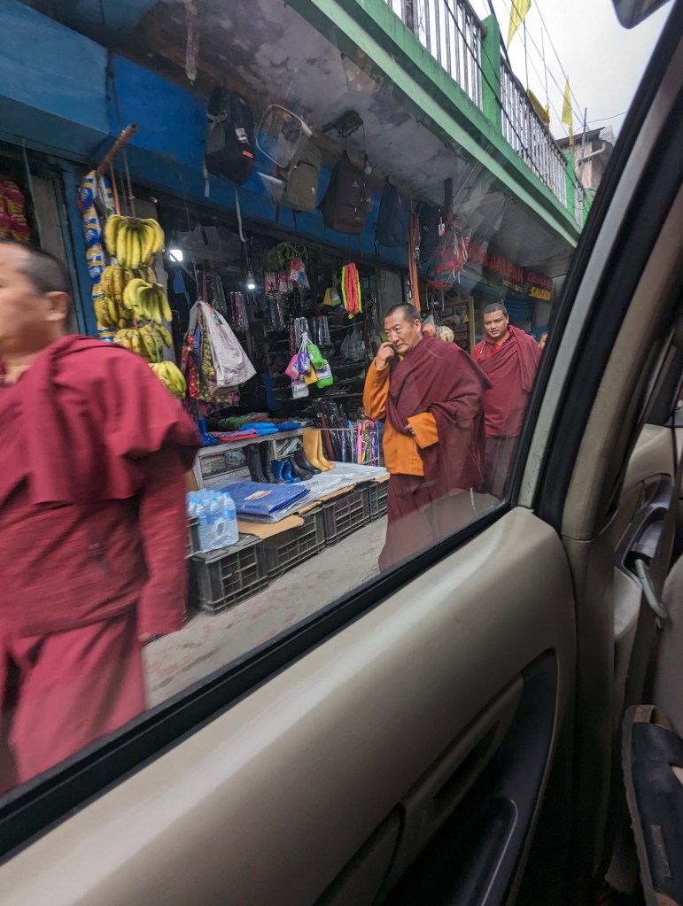 In classic form we headed back to our recently discovered good coffee spot down the road and grabbed takeaway strong coffees for a stroll down into the main town where we wanted to check out the Saturday market. This was bustling and had lots to see – every vegetable under the sun, freshly steamed momos, mangoes (its well and truly mango season now) and obscenely bright orange oranges. After the market we wondered through the rest of the town. We had been hoping to find the rumoured handmade paper shops to get some special notebooks for journaling in the silent retreat, but unfortunately such shops didn’t seem to exist here anymore. We wonder whether many of these things are products of a still suffering tourist industry post-covid, perhaps impacted also by the border closure into Nepal nearby which we had been hoping to use, which has also been closed since covid.