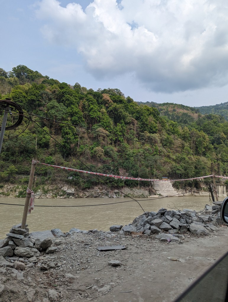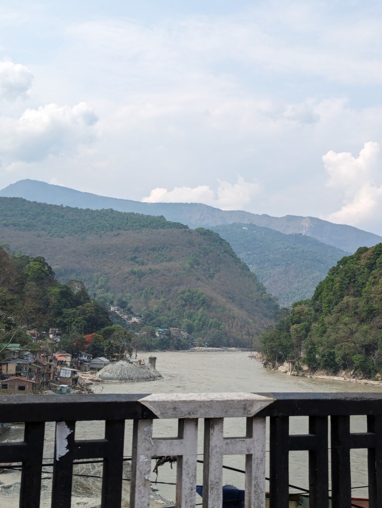 We headed back to the hotel and the harried hotel manager, who frankly seemed to be the only one in the place that did anything, helped us with our bags into the taxi. We set off on the three hour journey to Kalimpong, which sat on the next foothill over just past the huge Teesta river valley. The drive was uneventful, if reasonably interesting. We made our way along the ridge from Darjeeling through little villages called things like “7th Mile” and “9th Mile”, before the road suddenly plunged down into the river valley. The descent was a nauseating sequence of switchbacks, which even did a full 360 degree turn at one point to go underneath itself down the mountain. Once we were down and across the seething Teetsa river, it was a short ascent up to the town of Kalimpong and to our hotel.