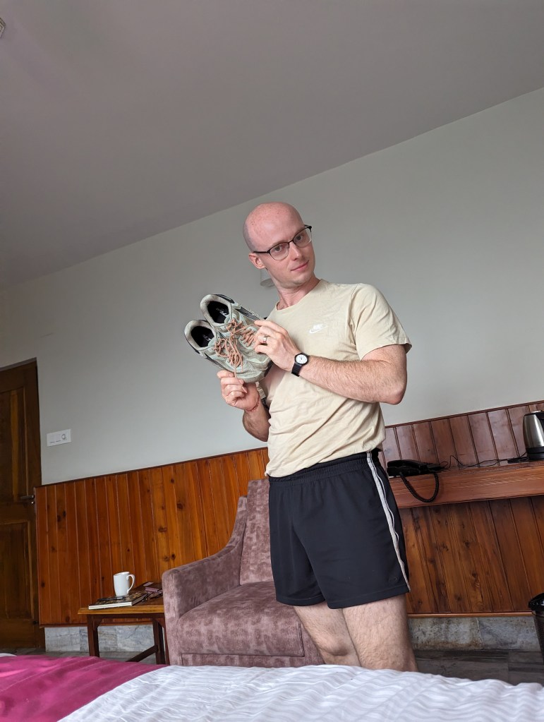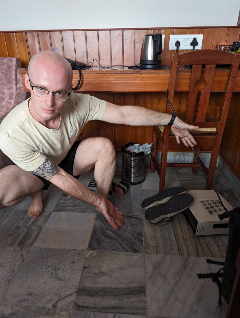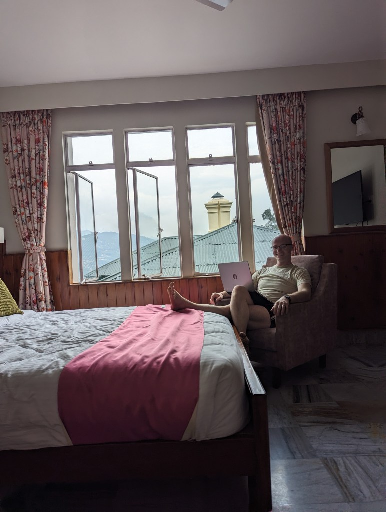 We were staying at what was a relatively expensive hotel in Kalimpong, but the general feeling was that the management had gotten a bit lax and some of the staff were very nice but utterly feckless. That said, we were shown to a room which was reasonably spacious but gloriously dry and free from the pervading damp of Darjeeling. We were even provided with a portable heater we could use to dry our still sodden trainers from the cycle ride a couple of days before.
