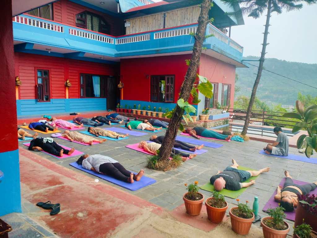 It was in the throes of this storm we had our first yoga session. The session was with the other teacher of the retreat, Drishan, a Nepalese man who couldn’t be far out of his teens and who transpired to be the son of the owners of the retreat. Drishan introduced himself and we started the session to the accompaniment of the howling winds and thunder outside. Drishan was a very sweet young man, and the session was well planned but relaxed and informal.