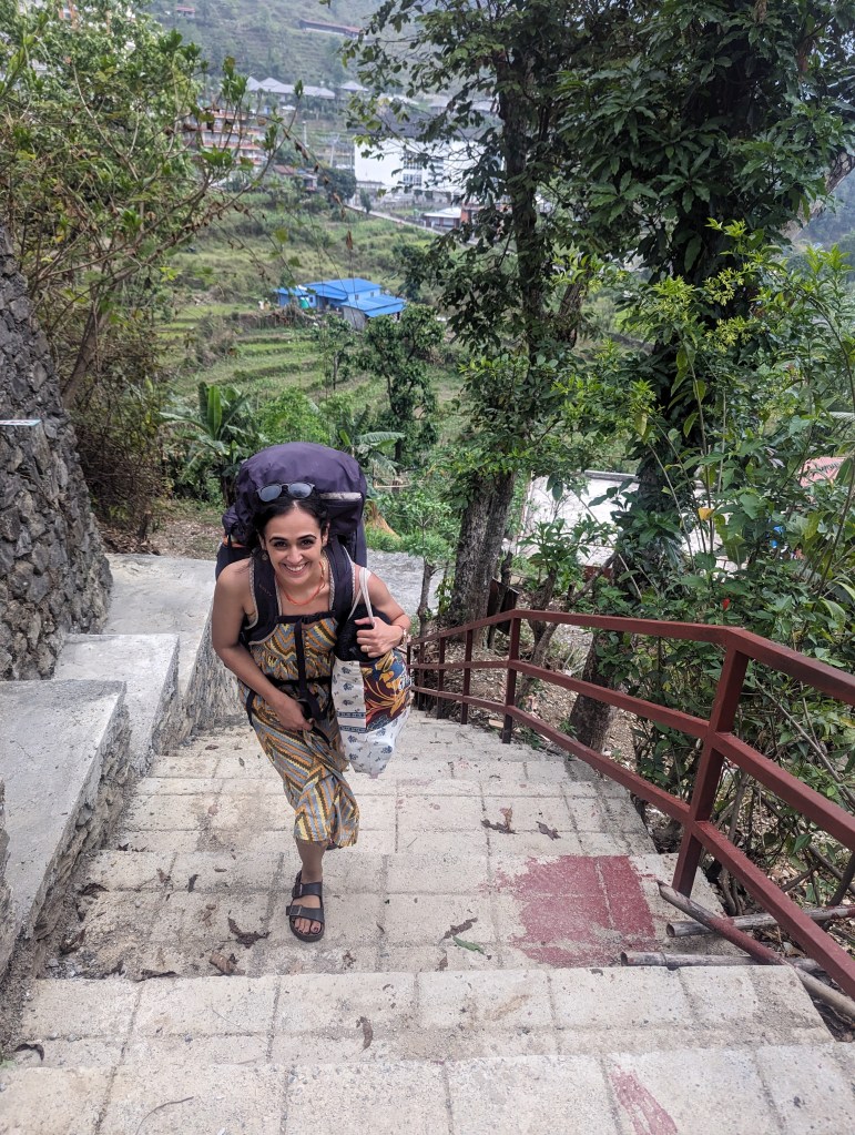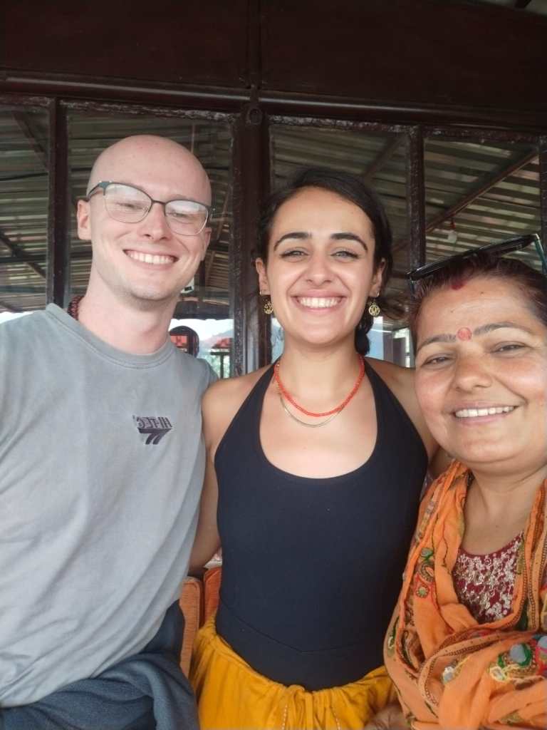 The following morning brought, finally, the end of our silence following breakfast. It was definitely a strange moment being able to speak and hug again, and I (Ellie) in particular found it very emotional. Our voices felt strange and our throats almost immediately sore but we slowly started to catch up on how we’d found things. As we were waiting for me to stop crying so that I could take my breakfast plate back down without the embarrassment, Durga showed up on the rooftop as she said she wanted to be able to speak to us after the silence. We spent several hours chatting to her about everything from how the retreat is going (its been running since 1998 so has had lots of ups and downs), her life, our lives etc. She said lots of lovely things about our matching energies and it was generally nice to get to know her some more. From both this and some of her earlier talks it was clear that she was raised in a very spiritual family but had been through some very tough times with her mental health before finding the connection with faith she has today, and we were touched by her honestly and vulnerability. We stayed so long that Bhavana insisted on cooking us one last big lunch (one of the best of the trip – an egg curry with leftover breakfast eggs) and packing us up more of the boiled eggs to take home as Rob had raved about how much he loved the salty-egg breakfasts.