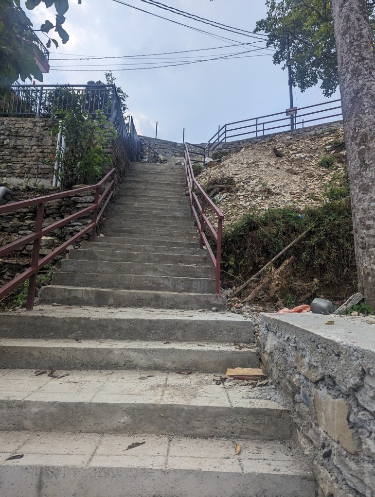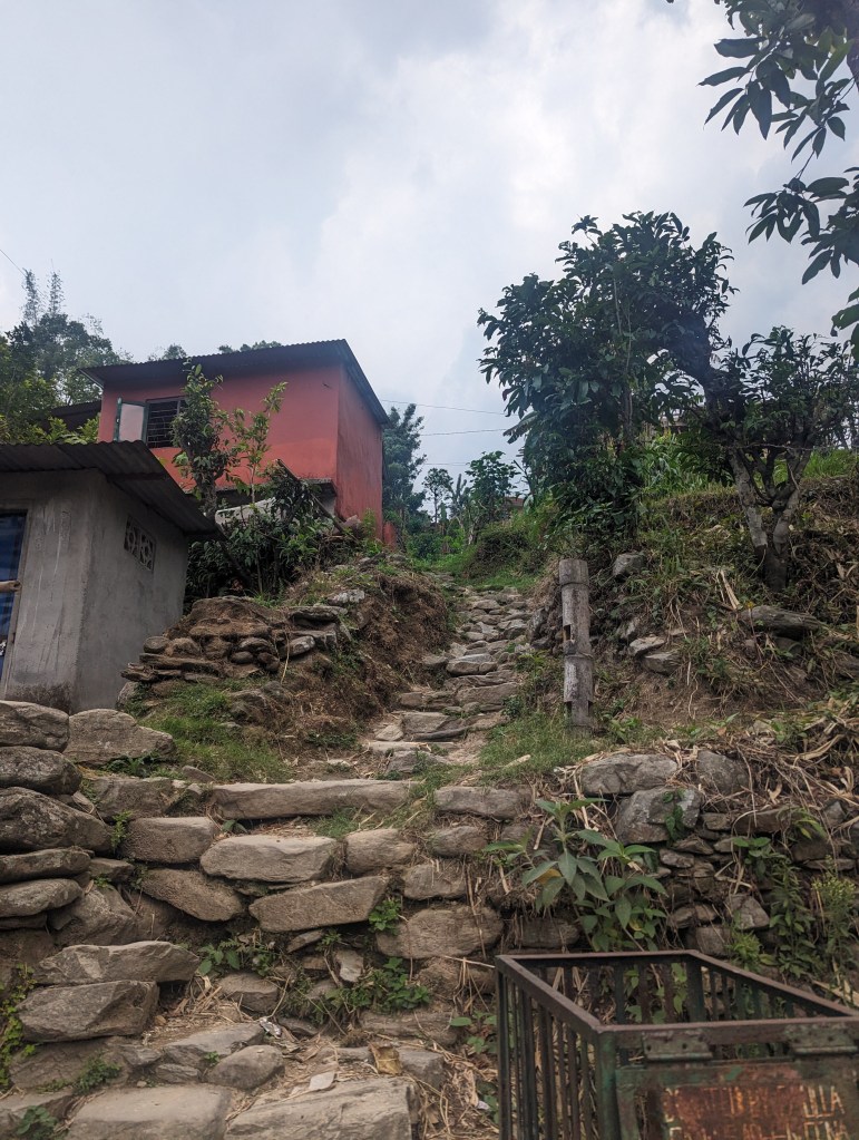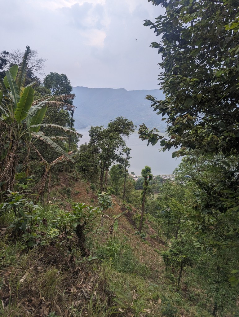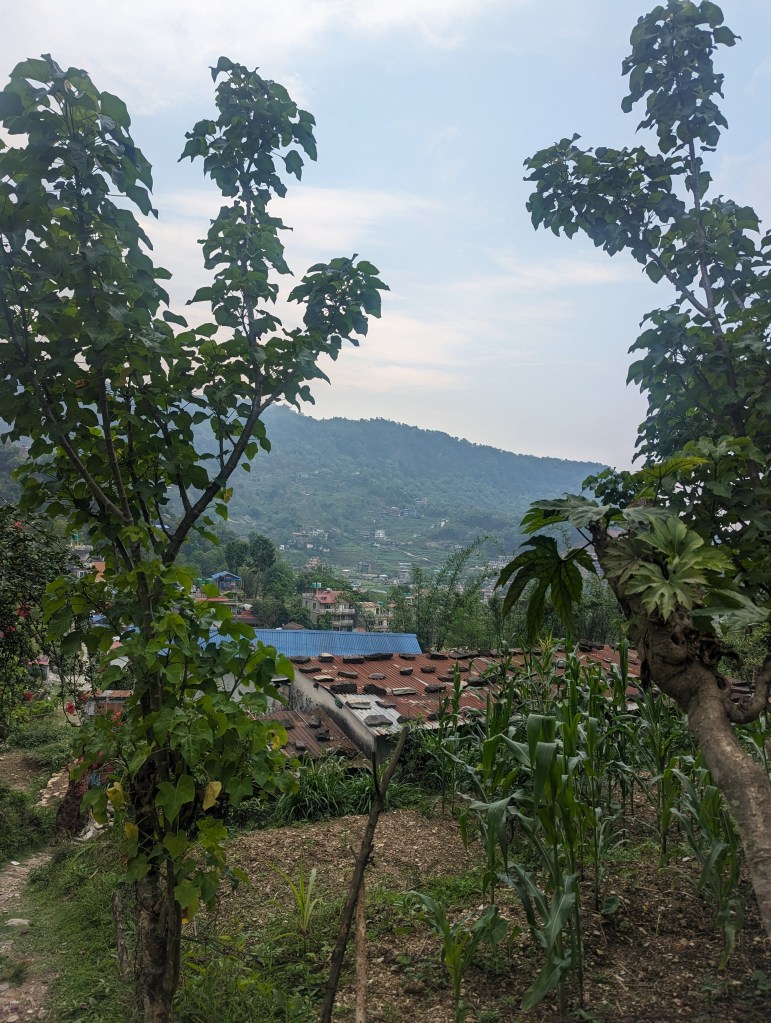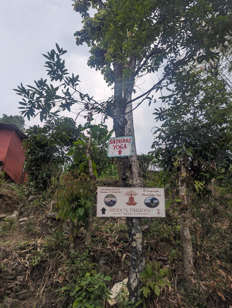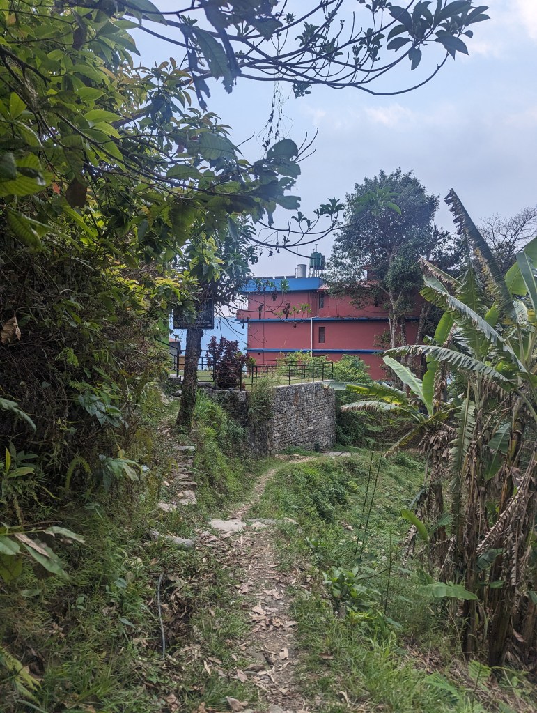 The taxi journey was a nervous one, with neither one us knowing really what to expect from the next week or so. Sadhana retreat was situated on a prominence of the hills surrounding Phewa Lake to the northwest of Pokhara itself, and we had a steep climb up some steps past little homesteads and tiny plots of farm lands on the hill side to reach it from where the taxi dropped us off.