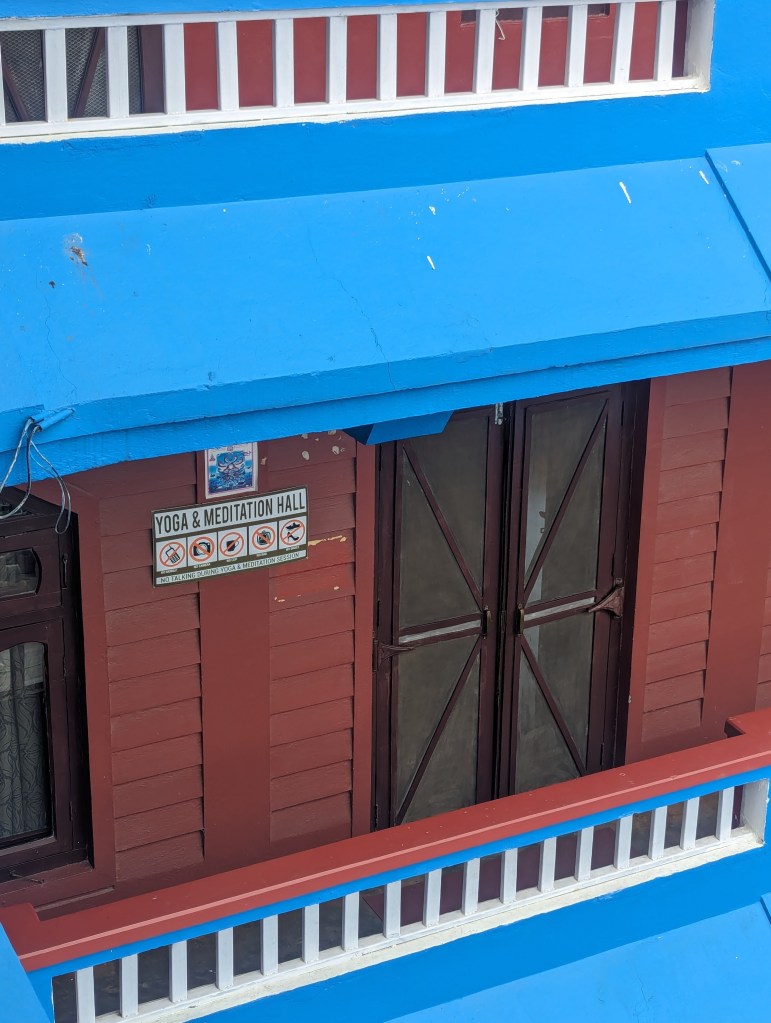 Komal explained to us (quite briefly, he was evidently a man of few words) the schedule for the silent days, and showed us to our room in the retreat for us to drop our bags. The retreat was a large, 4-storied L-shaped building with a central courtyard and garden with a small plunge pool. Our room was on the 2nd floor, one above the yoga and meditation hall, and one below the kitchen. Above the kitchen was the roof terrace which featured a large, low, square dining table, and a covered balcony seating area.