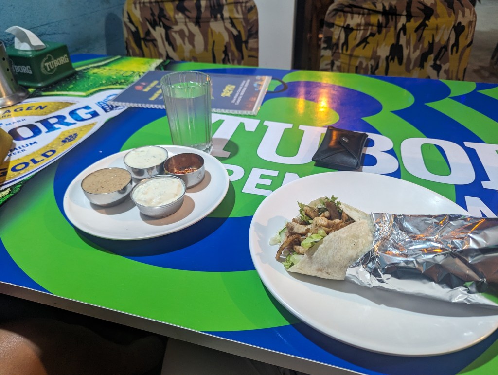 It was getting late by the time the film had finished, and we had spied a small Nepalese-Turkish (surely the only one in Pokhara, if not the world) restaurant on the walk home. We took a seat not before the closing time of 10pm, and ordered what were pretty authentic chicken and vegatable gyros whilst sitting next to the cafe owner’s young daughter who was transfixed on playing games on her parent’s phone. By the time we had finished eating the huge wraps, the family were sitting down to their own dinner so we took our leave and walked the short walk home and to bed.