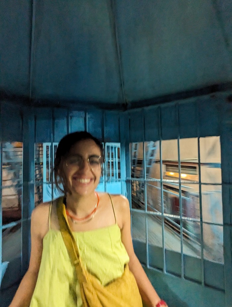We were placed into one of the metal cages by a Nepali man who couldn’t have yet seen twenty years, and metal bars secured us with about half a foot of room of space between them and our laps. The ride was operated by the same man inserting a metal rod into a hole in the ground, and then twisting it around until the ride was going as fast as he saw fit. This was, as it turned out, quite fast and we were slingshotted up and around the wheel for a good long 5-10 minutes before he put down his mobile phone, stuck the rod into the ground and gave it a twist in the opposite direction to slow us down.