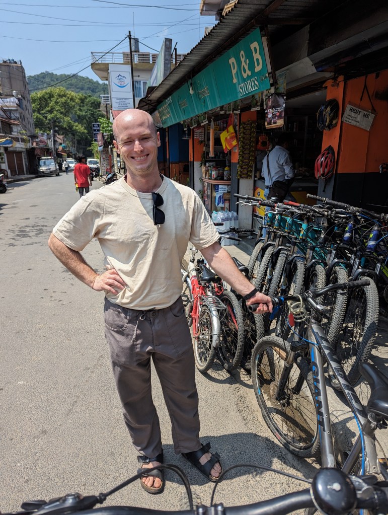 From here we headed to a nearby bicycle rental place as we had plans to head further afield. The pictures of the shop online looked very basic, but they had plenty of bikes including the absolute luxury of a short women’s bike for me (Ellie) and the man spent a good 10 minutes ensuring they were perfectly oiled, tyres full and brakes sharp for us before we took them out for the day. We cycled mostly uphill to ‘old Pokhara’, the section of the city north-east of the Lakeside area which has remained largely untouched by the Western tourists which have absolutely taken over the Lakeside zone.