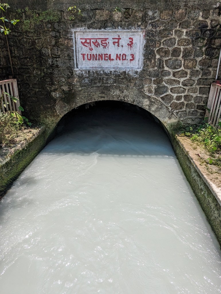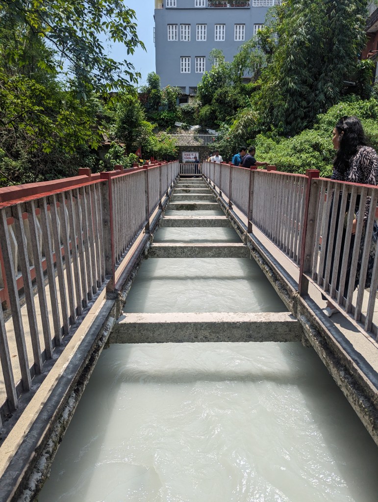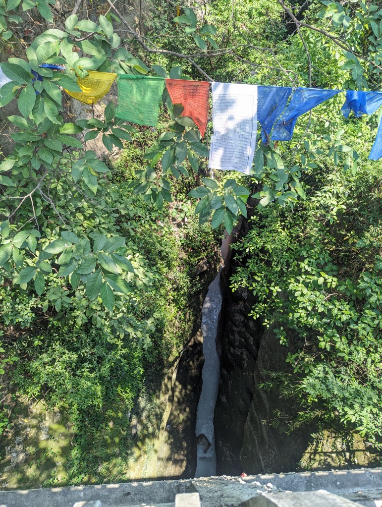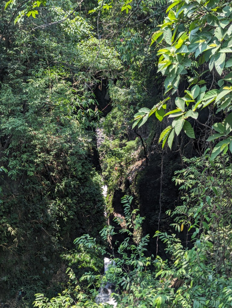 We got back on our bikes to head the half hour further to the Seti river gorge, an area described in the Lonely Planet guide as where the river became very narrow so that its milky white colour became especially opaque. From the description and in fact from the total lack of fanfare at the outside of the site, we were both expecting it to be a bit underwhelming, but we were pleasantly surprised. At the bottom of the winding steps down to the bridge over the gorge, they had funnelled part of the river across the middle of the bridge, which was impressively fast moving and in fact completely opaque milky-white. More impressive than this, looking down over the side of the bridge was a terrifying drop, and the tiny river flowed fast though the slit between the sheer rock sides. On either side trees with hanging climbers formed a canopy and the whole scene was much more spectacular than we’d thought, despite making your extremities tingle to look out over.