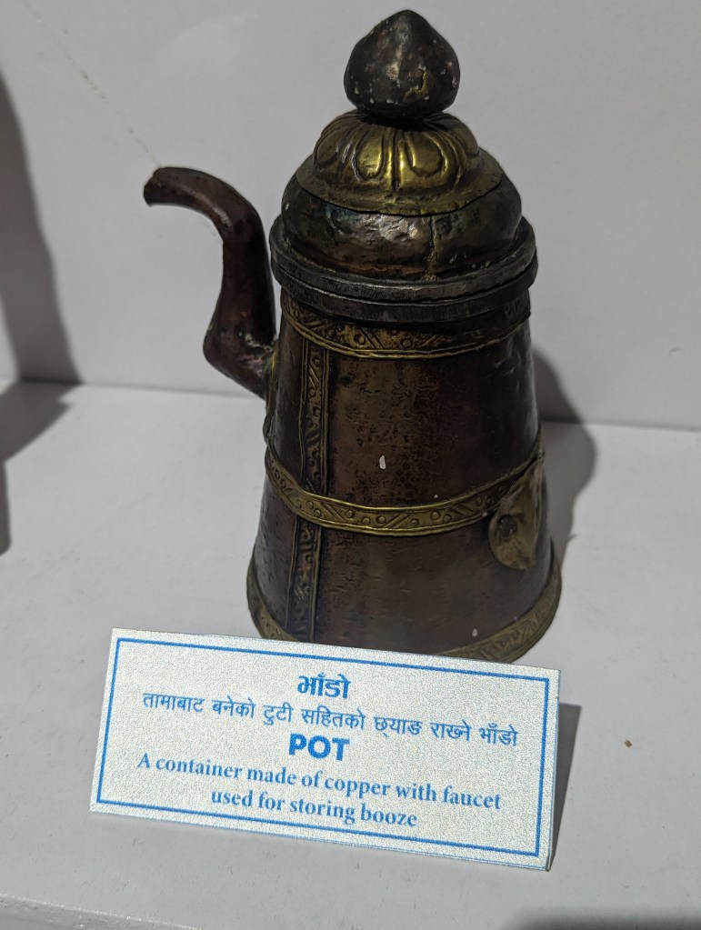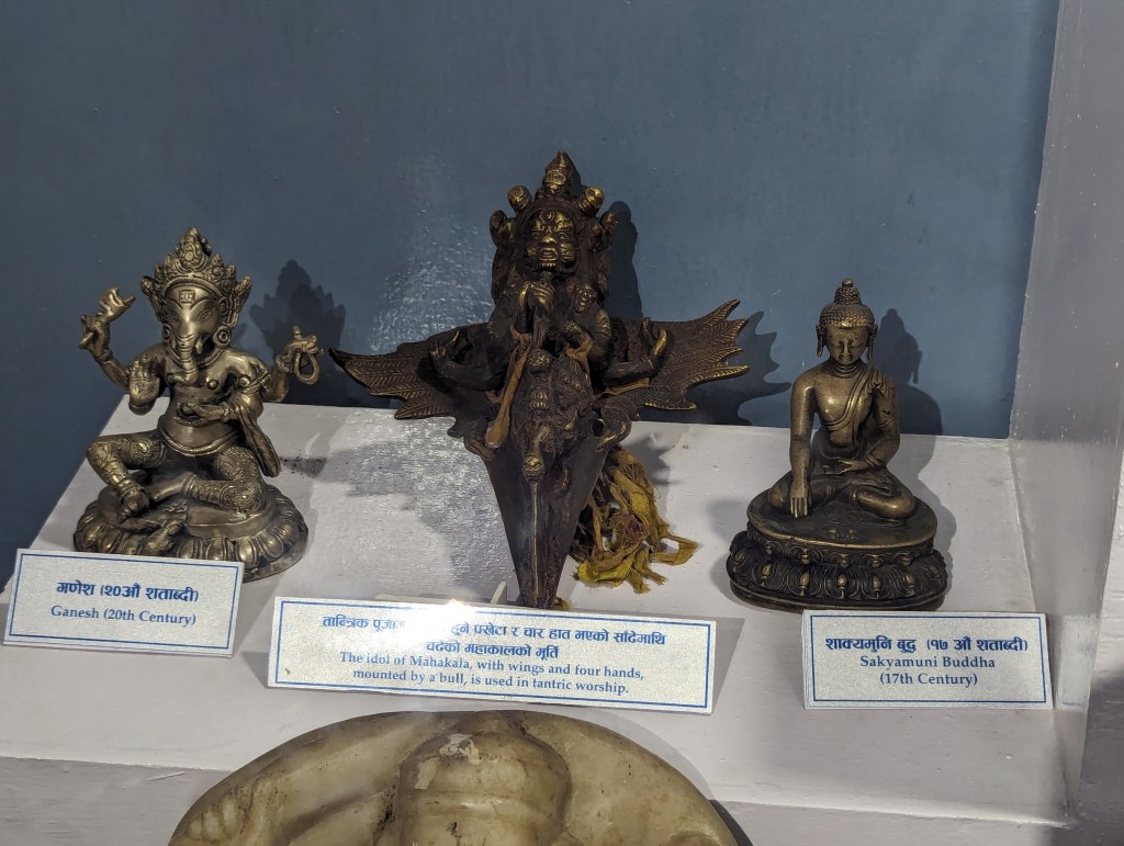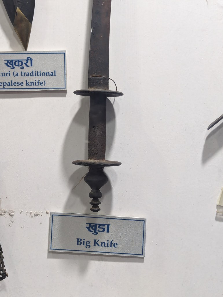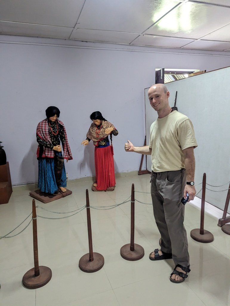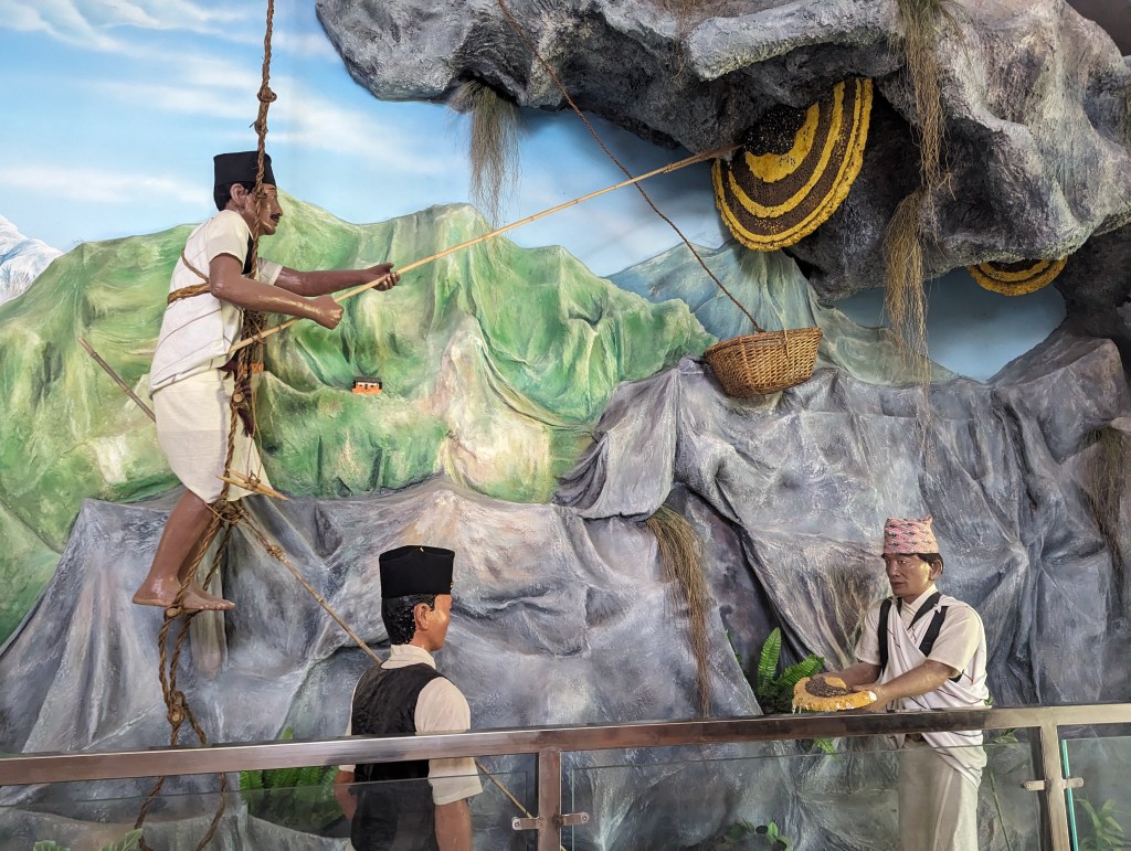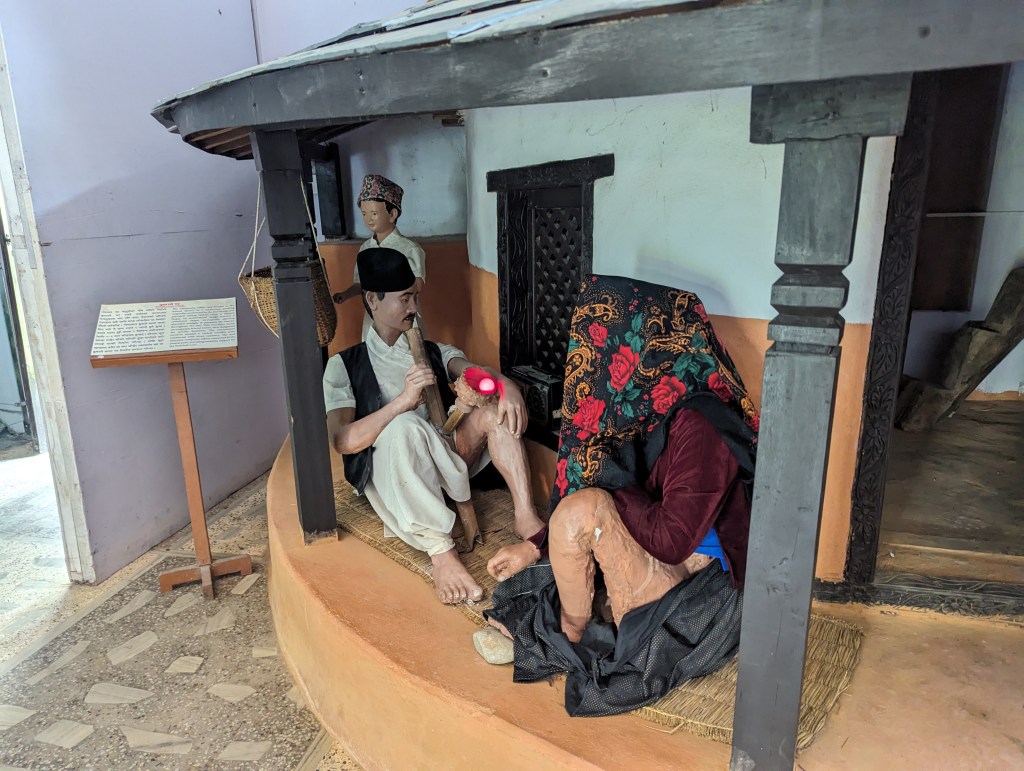 We sat down outside a tiny little nearby local shop to drink a cold glass bottle of coke before heading part of the way back down the hill to the Pokhara Regional Museum. Again from the guidebook we knew this would be a very local affair, but it was really sweet and provided a few laughs too. The play area outside was crammed with Nepali school trips, where by chance we’d arrived on their lunch break leaving us to explore the museum alone. There was a lovely small photography section with images of traditional local life, some artifacts with amusing signs, and deeply disturbing wax models of people practicing traditional ways of life.