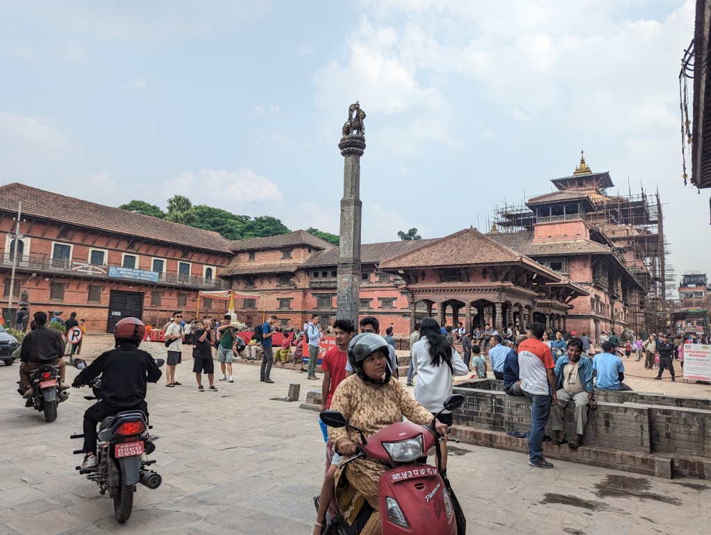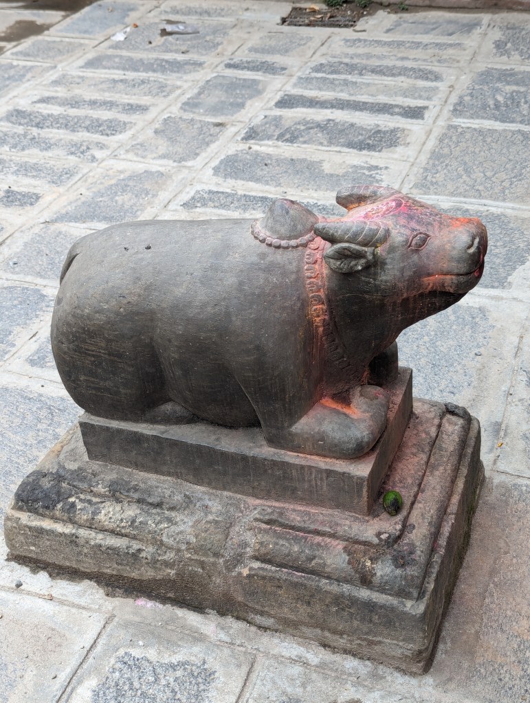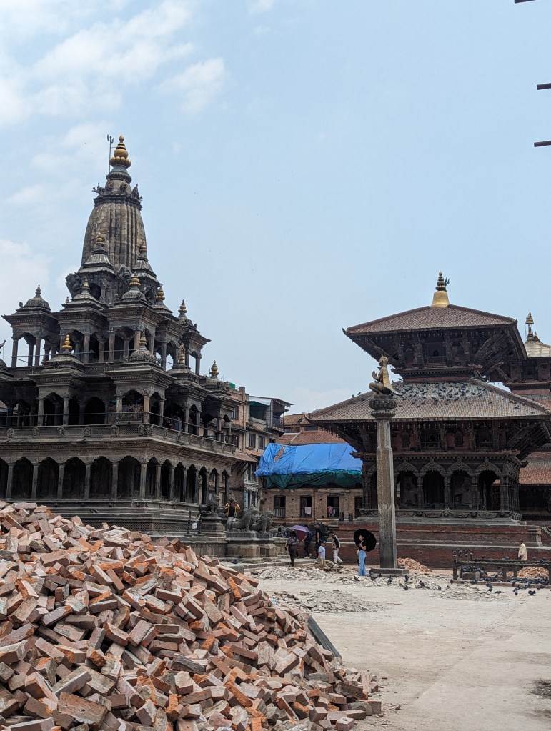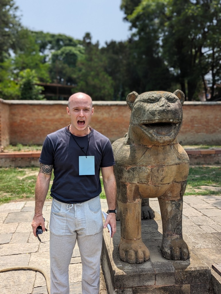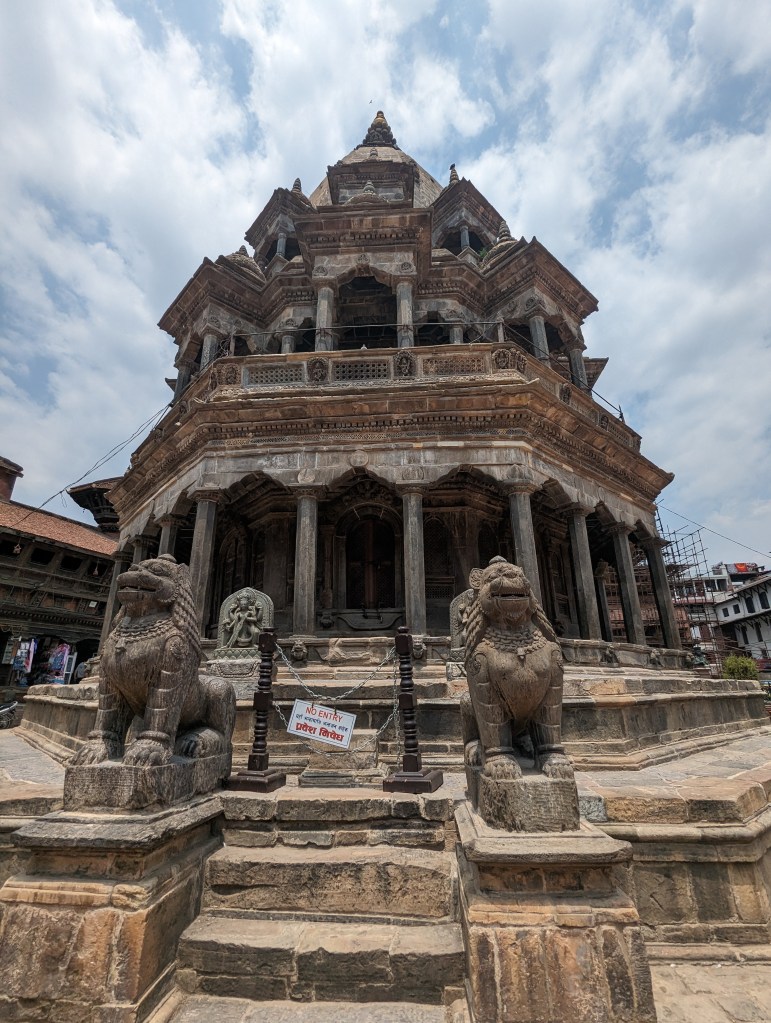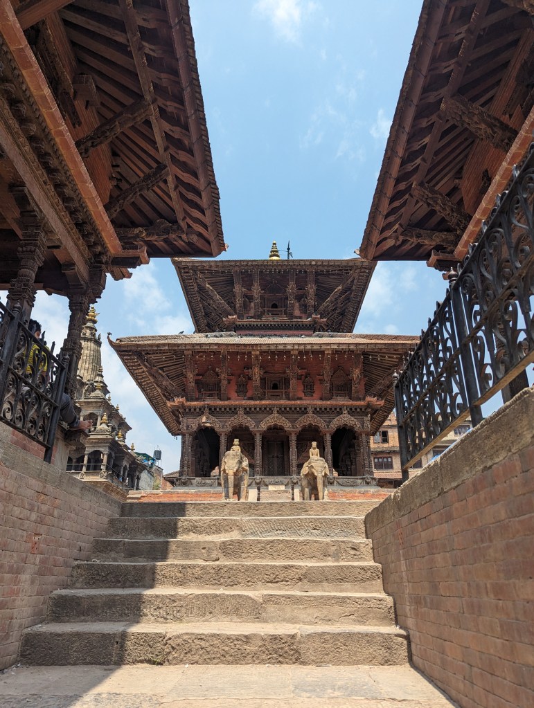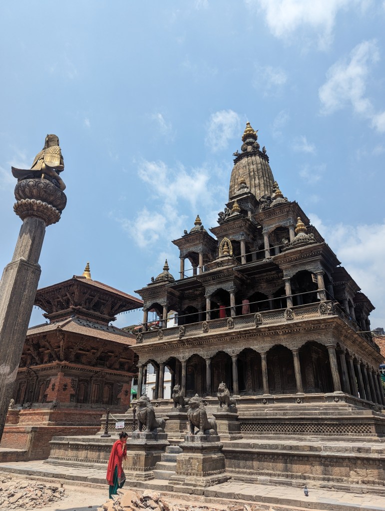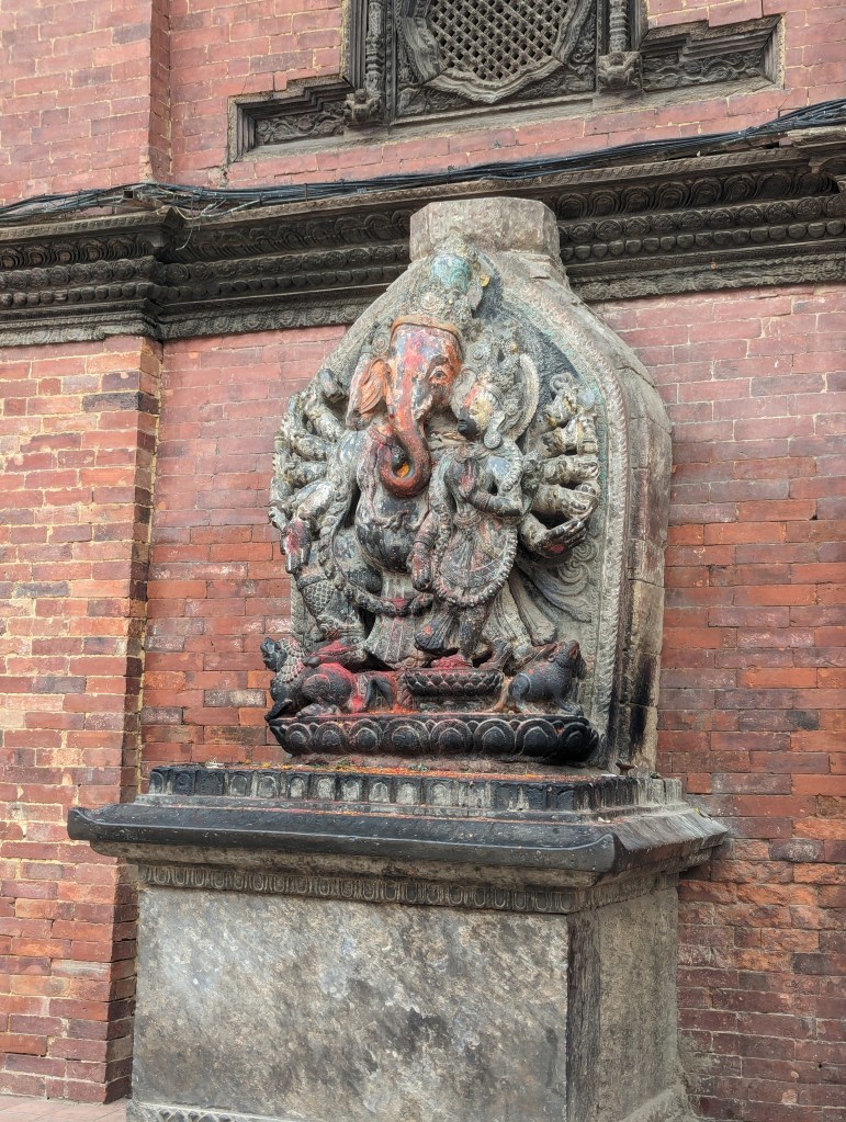 After paying our entry fee to the square and donning the required embarrassingly obvious tourist permits around our necks, we set off looking around the many little temples in the centre. Most could only be viewed from the outside – including templates dedicated to Shiva, Vishnu and Krisha with their respective mounts (animals who loyally carry each God) waiting outside. We were notably allowed to enter a temple in which an idol of the ‘muscleman’ God depicted as sitting on an enemy which was somewhat entertaining, unfortunately we weren’t allowed to take any snaps of him. Some of the temples in the area were still in the process of being rebuilt after the 2015 earthquake, which practically flattened the entire square.