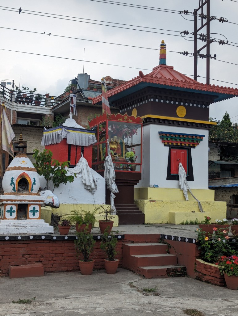 The monastery was quite a spectacle – all red walls and gold roofs – and was home to 250 monks. Some of these, like at the monestaries in Pokhara, where only boys. Some of these boys were playing chase with their robes over their heads as we walked around, clearly in an interval between their lessons. The complex was massive, with several meditation halls, a guest house, accommodation for the junior and senior monks, and the residence of the Rinpoche who was the chief lama of the monastery. We wandered around a few of the prayer halls and statues in peaceful quiet (we seemed to be the only tourists there), before making our way to the homestay we had booked a short walk away.