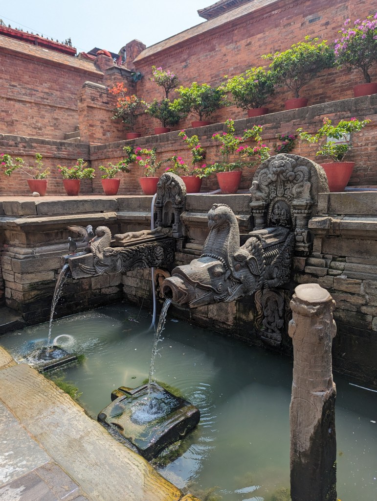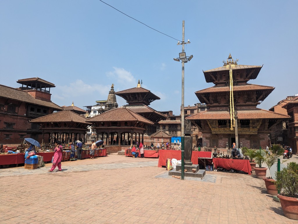 Wednesday started with another uneventful breakfast at Newa Chen. We had both made the interesting decision to order black tea, and had to ask for more tea bags as they needed the whole 3 minutes of extra brew time in order to not resemble dishwasher water. The eggy-fried-lentil-pancake local breakfast though was passable, and we headed straight out to try another local coffee place afterwards. The imaginatively named Patan SIP was a cafe/garden centre which made for a very pleasant drink quite literally in a greenhouse full of beautiful flowers and plants. Here we read up on the various temples and shrines in the main Durbar Square, which we planned to explore that morning.