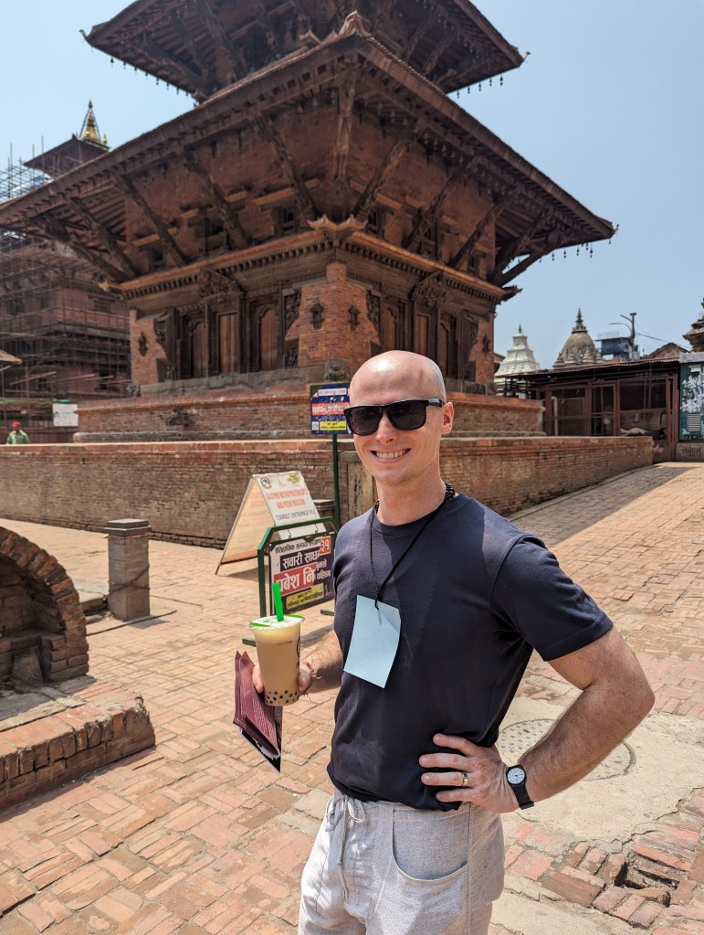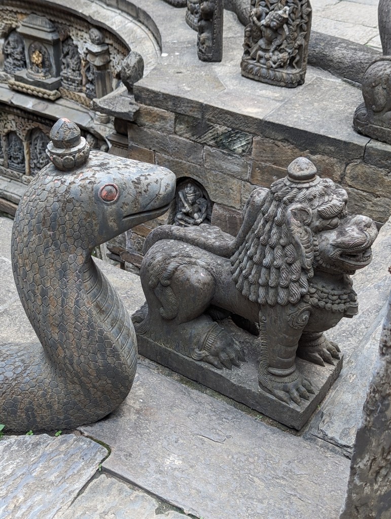 Several statues, courtyards, piles of bricks, and a bubble tea so sweet it made Rob nauseous later we made our way into the Patan museum which was probably the best museum we’ve been to all trip. To be honest the bar has been low with many museums lacking any curation or explanation at all, with random sign-less objects strewn throughout, but this one would have been at home in London. It mainly contained icons of Hindu and Buddhist deities, but they were arranged into displays discussing how each could be identified – for example a section on identifying by posture, another on by object held, or on hand position (mudra). It also had a thoughtful section on Tantric worship practices and iconography, and how these are often misinterpreted.