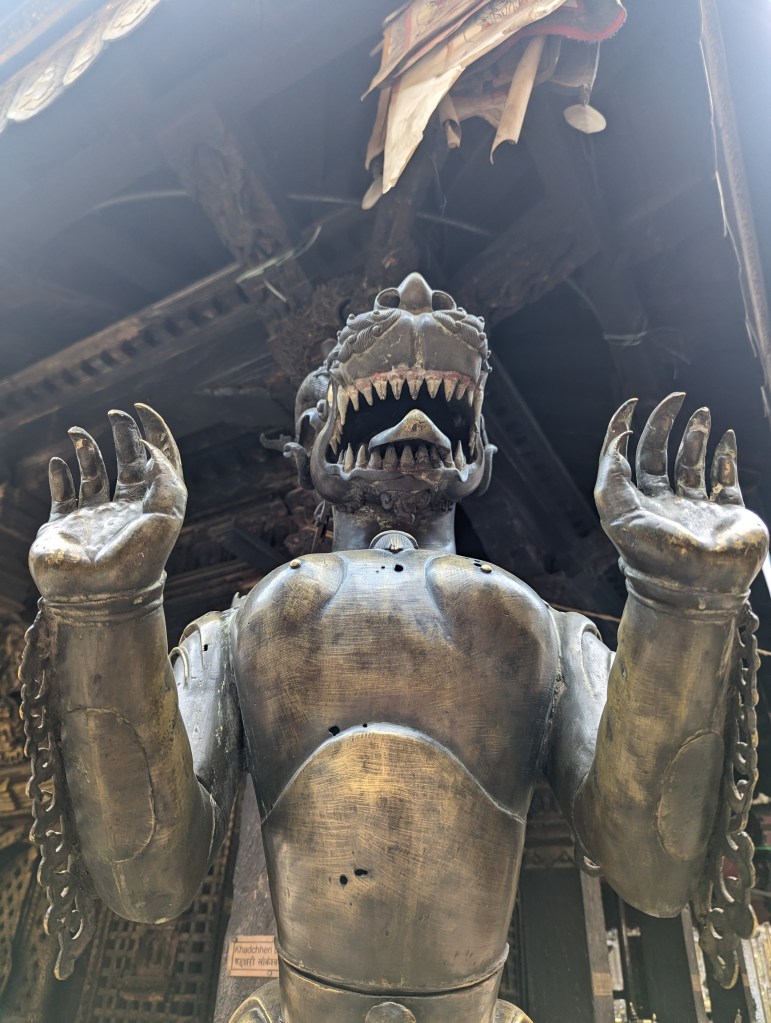 We grabbed some lunch in the deserted but pleasant museum cafe – a Kathi roll (of the delicious ‘hot kathi rolls;’ street vendor in Kolkata) which was about 10x more spicy than the street side Indian ones we’d sampled. We’ve maybe been slow to learn that the Newaris seriously love their spice.